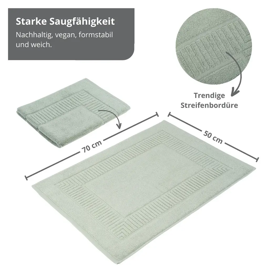 • Особенности: Холодные ноги на плитке в ванной не должны быть проблемой. Высококачественный органический коврик для ванной, изготовленный из 100% чистого органического хлопка, обеспечит вашим ногам ощущение тепла и комфорта в ванной комнате. Органический коврик для ванной доступен в различных однотонных цветах. У вас также есть два размера на выбор: 50 х 70 см и 60 х 100 см. Элегантный внешний вид и приятные ощущения станут новым украшением вашей ванной комнаты.