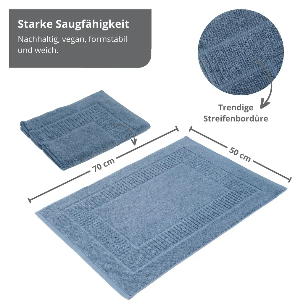 • Особенности: Холодные ноги на плитке в ванной не должны быть проблемой. Высококачественный органический коврик для ванной, изготовленный из 100% чистого органического хлопка, обеспечит вашим ногам ощущение тепла и комфорта в ванной комнате. Органический коврик для ванной доступен в различных однотонных цветах. У вас также есть два размера на выбор: 50 х 70 см и 60 х 100 см. Элегантный внешний вид и приятные ощущения станут новым украшением вашей ванной комнаты.