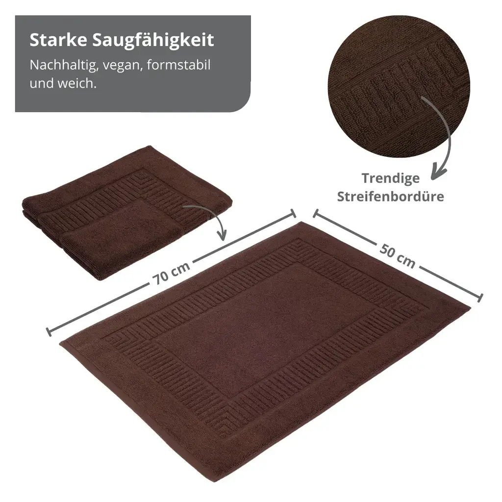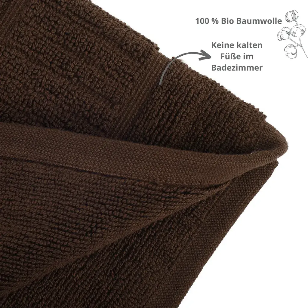 Избегайте холодных ног на плитке в ванной с помощью нашего высококачественного органического коврика для ванной, изготовленного из 100 % чистого органического хлопка. Этот пушистый коврик для ванной создаст ощущение уюта и тепла в ванной комнате. Доступный в многочисленных однотонных цветах, таких как белый, кремовый, красный, старо-розовый, ягодный, синий, бензиновый, серо-коричневый, коричневый, мятный, серебристый и антрацит, он идеально вписывается в любой интерьер. Выбирайте размеры 50 x 70 см (900 г/м²) или 60 x 100 см (1200 г/м²). Сертифицировано GOTS, можно стирать при 60 °C и сушить в стиральной машине.