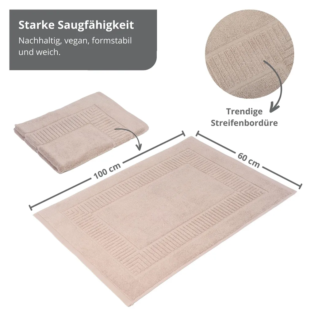 Избегайте холодных ног на плитке в ванной с помощью нашего высококачественного органического коврика для ванной, изготовленного из 100% чистого органического хлопка. Этот пушистый коврик для ванной создаст ощущение уюта и тепла в ванной комнате. Доступный в многочисленных однотонных цветах, таких как белый, кремовый, красный, старо-розовый, ягодный, синий, бензиновый, серо-коричневый, коричневый, мятный, серебристый и антрацит, он идеально вписывается в любой интерьер. Выбирайте размеры 50 x 70 см (900 г/м²) или 60 x 100 см (1200 г/м²). Сертифицировано GOTS, можно стирать при 60 °C и сушить в стиральной машине.