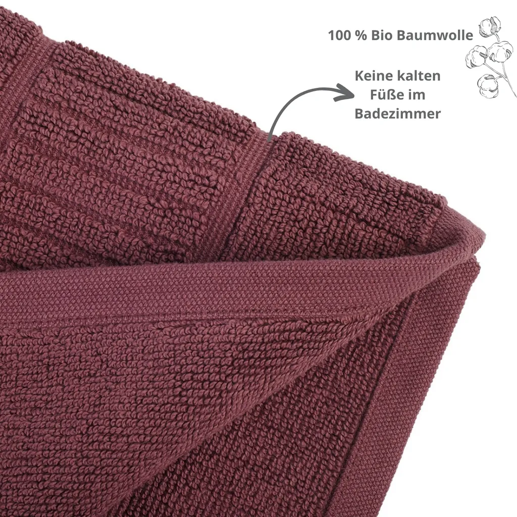 Избегайте холодных ног на плитке в ванной с помощью нашего высококачественного органического коврика для ванной, изготовленного из 100 % чистого органического хлопка. Этот пушистый коврик для ванной создаст ощущение уюта и тепла в ванной комнате. Доступный в многочисленных однотонных цветах, таких как белый, кремовый, красный, старо-розовый, ягодный, синий, бензиновый, серо-коричневый, коричневый, мятный, серебристый и антрацит, он идеально вписывается в любой интерьер. Выбирайте размеры 50 x 70 см (900 г/м²) или 60 x 100 см (1200 г/м²). Сертифицировано GOTS, можно стирать при 60 °C и сушить в стиральной машине.