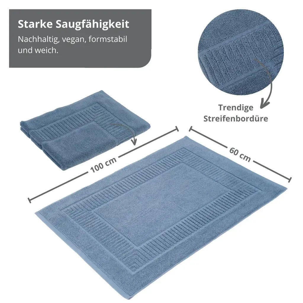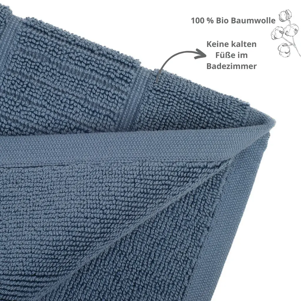 Избегайте холодных ног на плитке в ванной с помощью нашего высококачественного органического коврика для ванной, изготовленного из 100 % чистого органического хлопка. Этот пушистый коврик для ванной создаст ощущение уюта и тепла в ванной комнате. Доступный в многочисленных однотонных цветах, таких как белый, кремовый, красный, старо-розовый, ягодный, синий, бензиновый, серо-коричневый, коричневый, мятный, серебристый и антрацит, он идеально вписывается в любой интерьер. Выбирайте размеры 50 x 70 см (900 г/м²) или 60 x 100 см (1200 г/м²). Сертифицировано GOTS, можно стирать при 60 °C и сушить в стиральной машине.