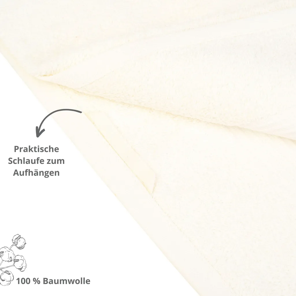 • Материал: Роскошнее и быть не может. 100% высококачественный хлопок сверхплотной плотности 550 г/м² для приятного ощущения кожи. Практичная петля для подвешивания на все стандартные держатели для полотенец или крючки.