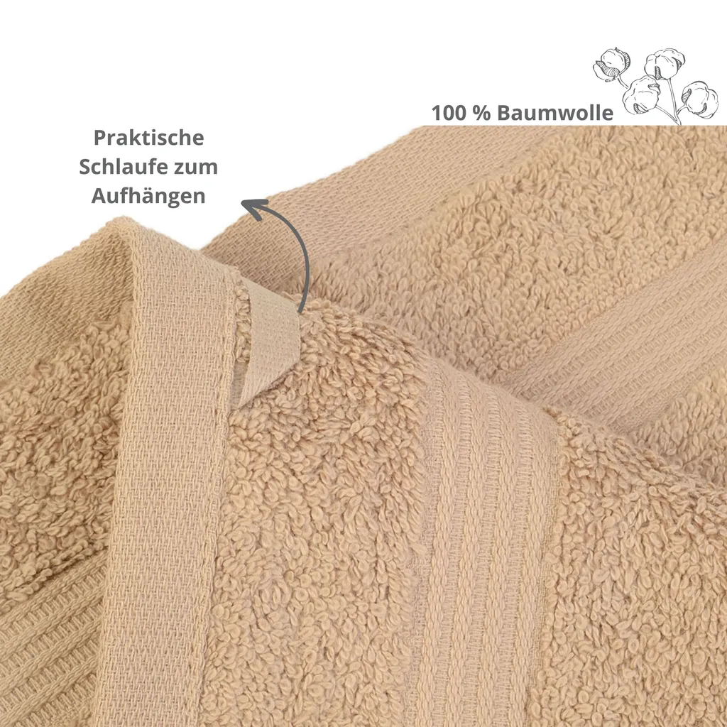 • Материал: Роскошнее и быть не может. 100% высококачественный хлопок сверхплотной плотности 550 г/м² для приятного ощущения кожи. Практичная петля для подвешивания на все стандартные держатели полотенец или крючки.