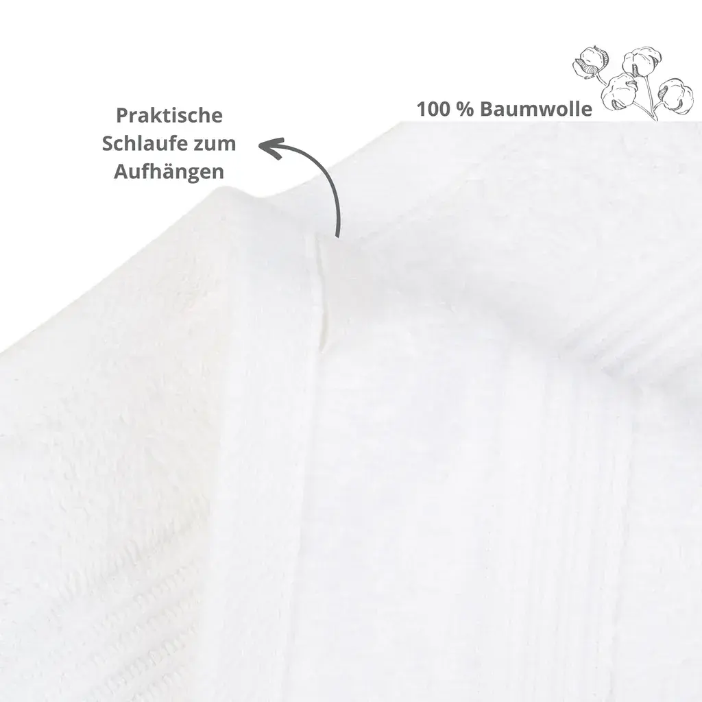 • Материал: Роскошнее и быть не может. 100% высококачественный хлопок сверхплотной плотности 550 г/м² для приятного ощущения кожи. Практичная петля для подвешивания на все стандартные держатели полотенец или крючки.