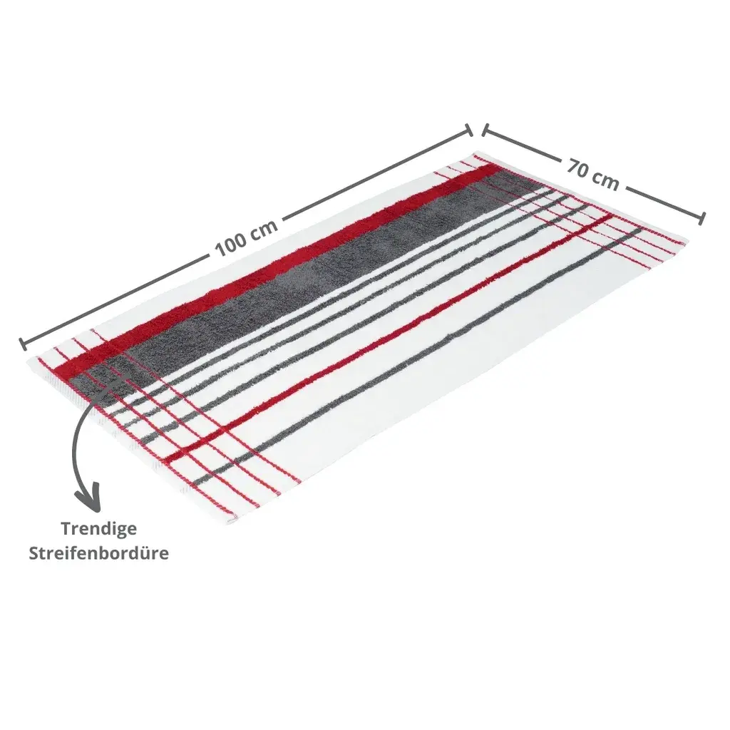Махровая серия Potsdam – однотонная и в полоску – вас порадует! Эти роскошные полотенца впечатляют своими превосходными практичными свойствами и разнообразием ярких цветов. Благодаря 17 однотонным цветам и идеально сочетающимся сериям полос они открывают безграничные возможности комбинирования. Эти махровые полотенца идеально подходят для ванной комнаты, бассейна или сауны. Они расставят стильные акценты и подарят настоящие моменты благополучия. Получите идеальное сочетание качества и дизайна у себя дома.