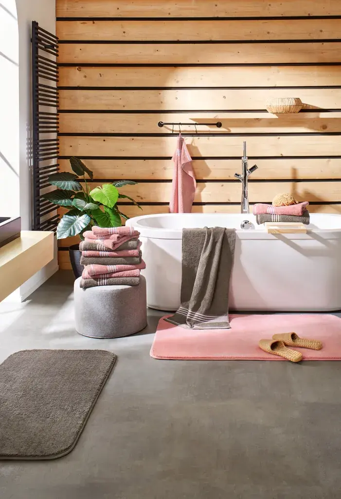 • Особенности: экологически чистый, веганский, стабильный по размеру, мягкий и объемный. Благодаря переплетению и большому весу ткани она очень плотная, не мнется и впитывает влагу. Использование бамбукового волокна в качестве натурального сырья придает тканям новый вид и дарит неотразимые и чувственные впечатления на всех уровнях. Элегантный внешний вид и приятные ощущения станут новым украшением вашей ванной комнаты.