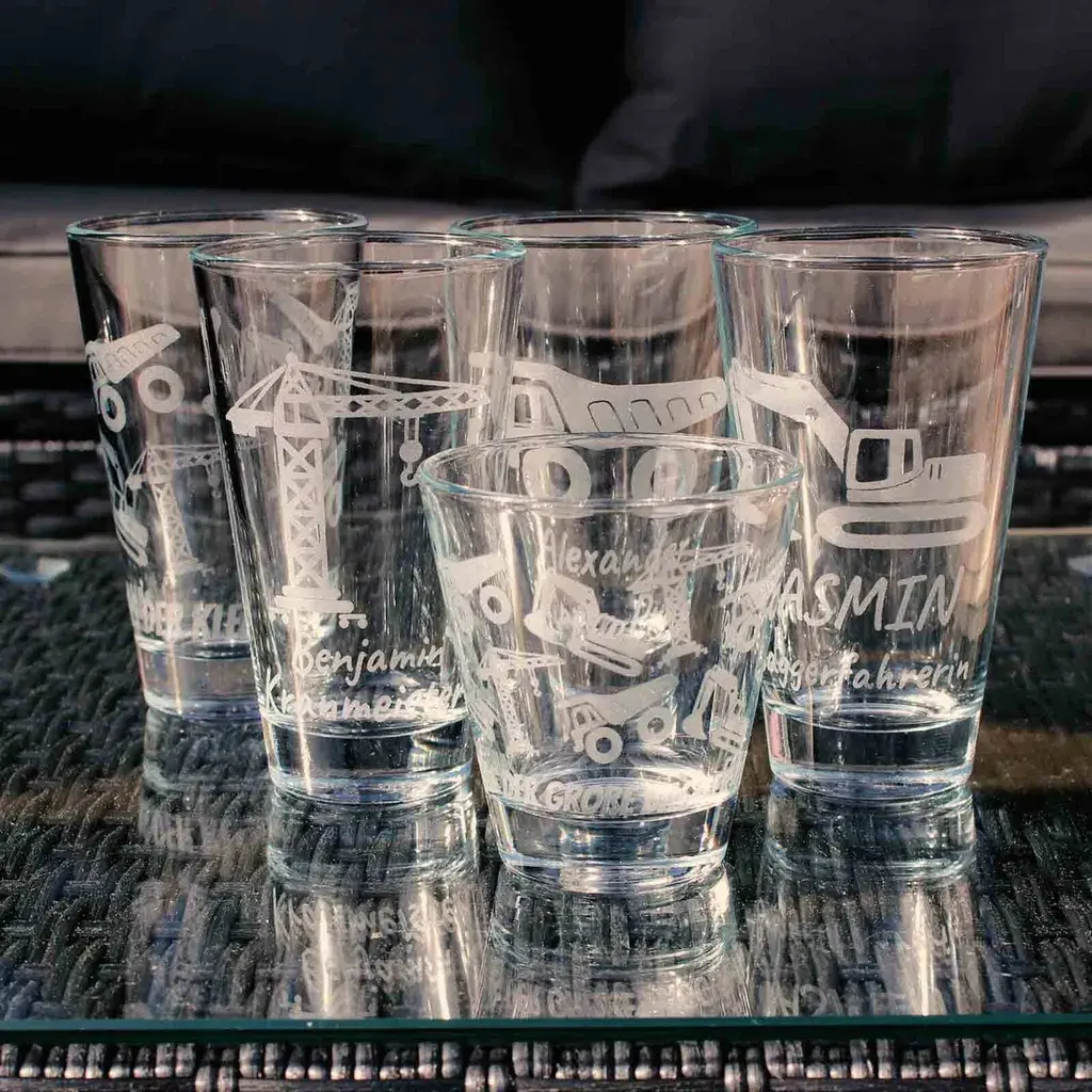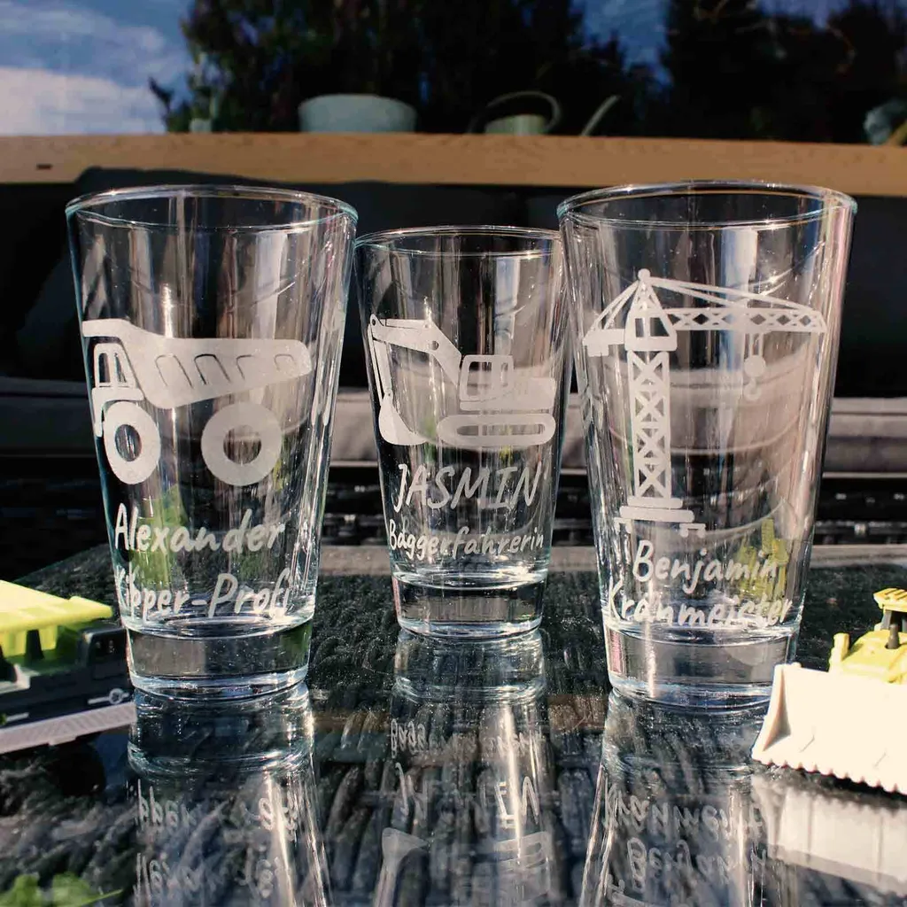 Стаканы/детские чашки можно использовать для самых разных напитков: воды, газированных напитков, соков, коктейлей и многое другое. Наш автопарк на строительной площадке включает в себя следующую технику: кран, экскаватор и самосвал. Мотив индивидуально выгравирован на лазерном станке, поэтому отклонения могут быть минимальными. Конечно, стаканы можно мыть в посудомоечной машине даже после гравировки.
