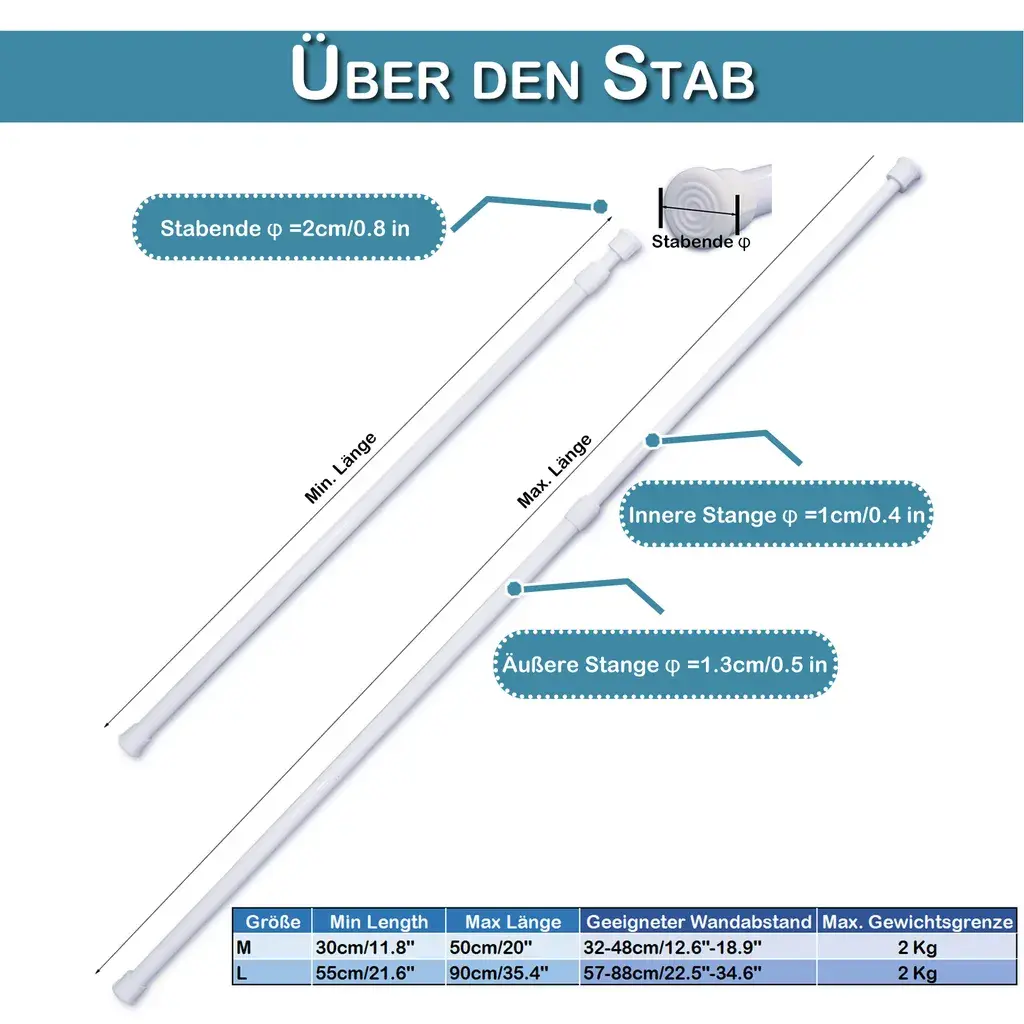 Шторы-перегородки с карнизом (опция) — комплект из 2 пружинных натяжных стержней, подходит для расстояний от стены от 32 см до 87 см.