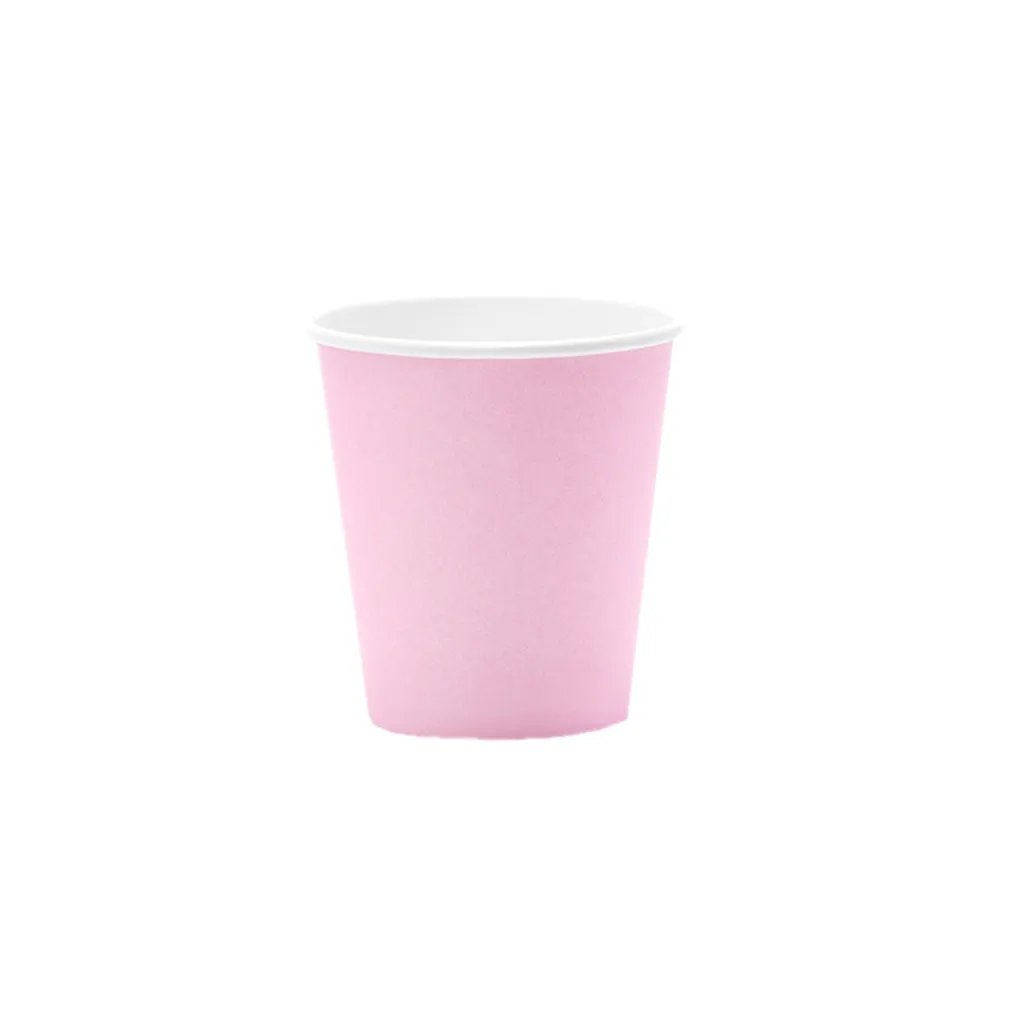 6 бумажных стаканчиков красивого нежно-розового цвета. Бумажные стаканчики подходят только для холодных напитков, таких как безалкогольные напитки, лимонад, соки и смузи. Светло-розовые бумажные стаканчики емкостью 200 мл. Будь то день рождения, вечеринка в саду или крестины, светло-розовые бумажные стаканчики придадут красок любой вечеринке!