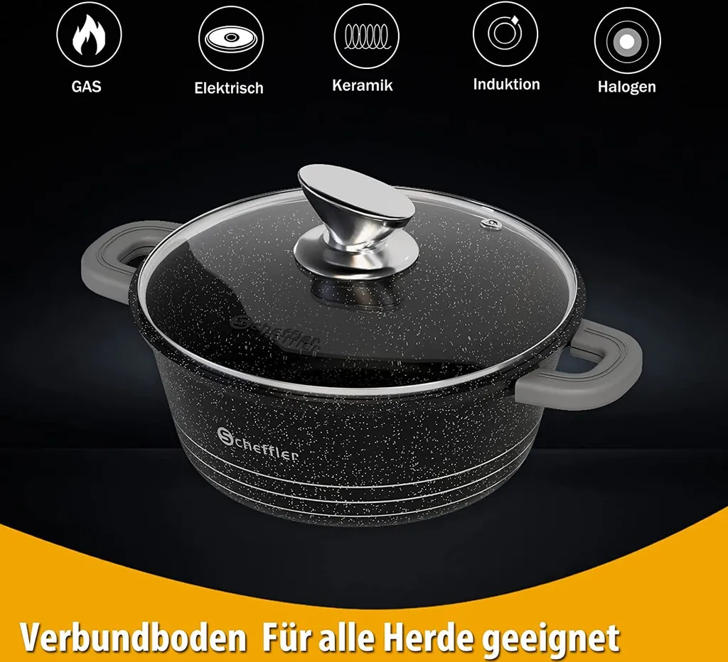 Кастрюля с антипригарным покрытием, литая алюминиевая стеклянная крышка, кастрюля с индукционной стеклянной крышкой