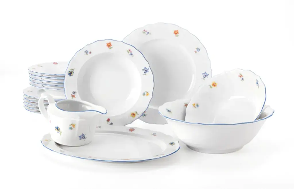 Столовый сервиз «Соната» гармонично сочетает в себе форму и дизайн. Его нежный цветочный декор идеально подходит для любого случая и создаст очаровательное ощущение весны на вашем столе.