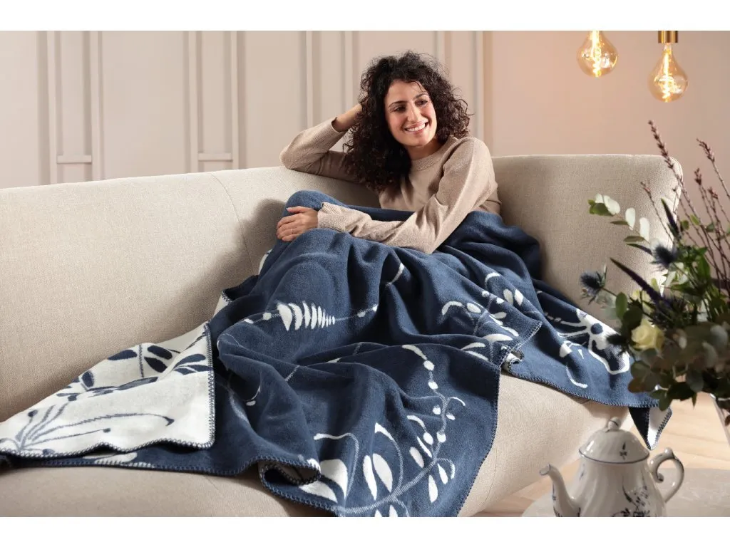 Юбилейное одеяло V&B представляет собой высококачественное одеяло размером 150 х 200 см. Основной цвет пледа — успокаивающий синий, который подчеркнут нежным узором в виде цветочных ветвей. По краю потолка имеется декоративная строчка, завершающая элегантный дизайн. Это одеяло изготовлено из комбинации 58% хлопка, 35% полиакрила и 7% полиэстера и имеет плотность 440 г/м². Это делает его особенно мягким и приятным, но при этом прочным и долговечным. За юбилейным одеялом V&B легко ухаживать, его можно стирать в машине при температуре 30 градусов.
