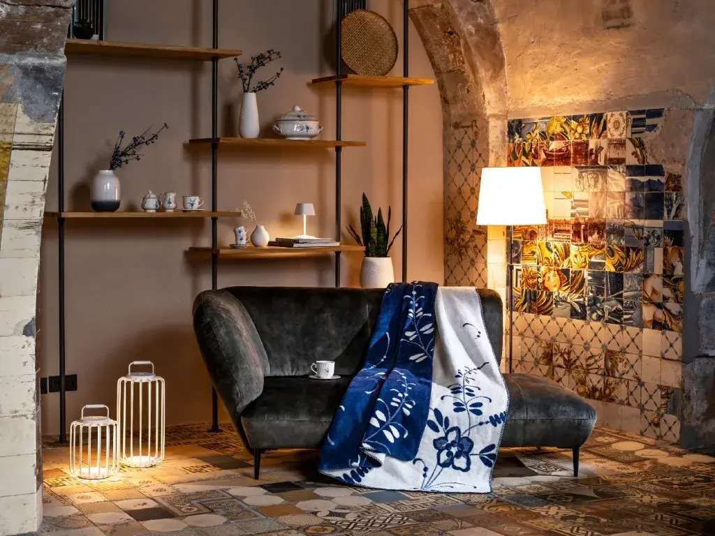 Здесь трендовая тема современного ретро-стиля становится новой изюминкой дизайна. В юбилейный год уютные одеяла сочетаются с самой продаваемой коллекцией Paradiso, создавая современный образ. Изогнутые усики и выразительные цветы творчески сгруппированы вокруг экзотических птиц. Изящно прорисованные листья и плоды сочетаются с традиционным синим цветом керамики. Декор Paradiso берет свое начало от классической синей гравюры на меди и был адаптирован к потолку в ознаменование юбилея.