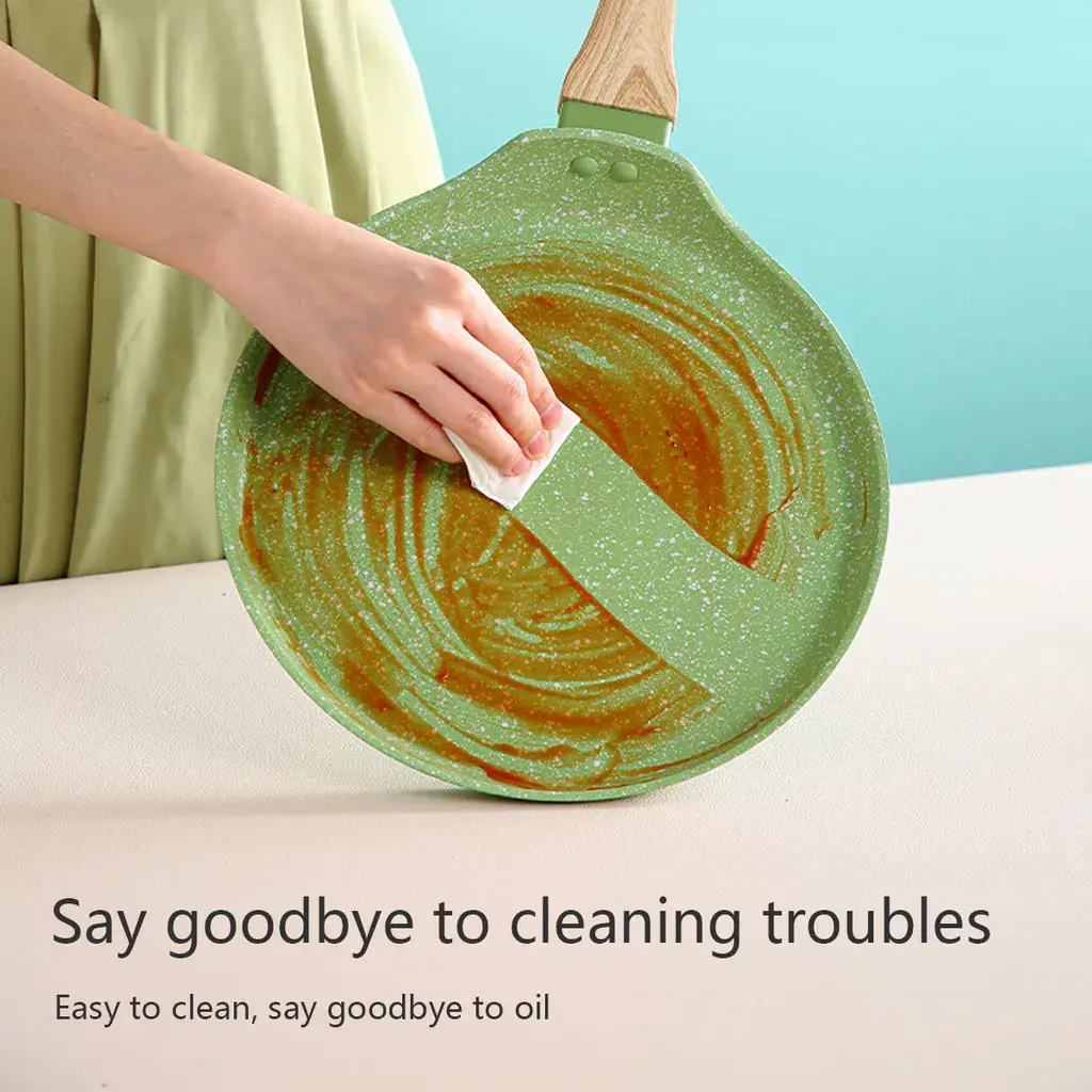 Эта сковорода из алюминиевого сплава и камня прочная. Прочный, красивый дизайн и длительный срок службы.