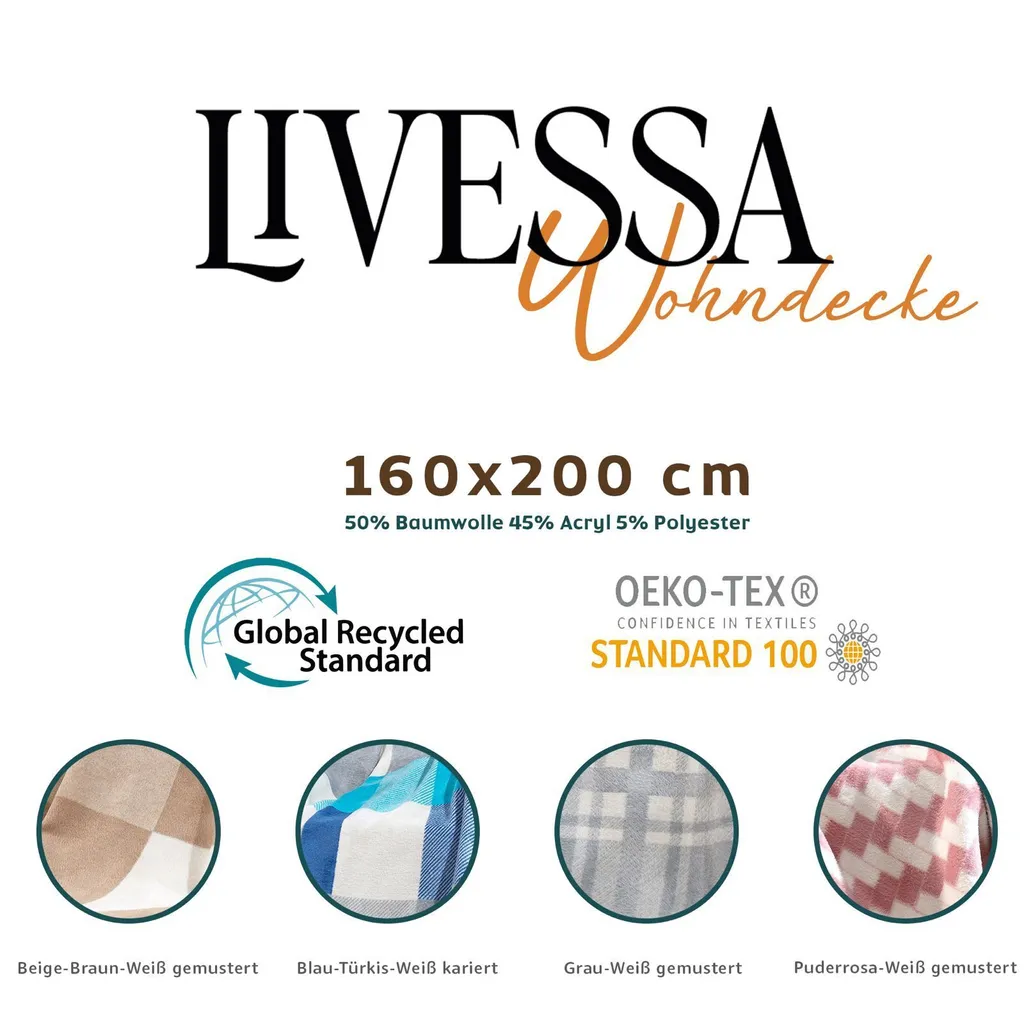 Наши одеяла изготовлены из 50% хлопка и 45% акрила и 5% полиэстер. Высокое содержание хлопка в этих одеялах из смеси акрила и хлопка коллекции LIVESSA гарантирует, что изделие будет невероятно мягким и согревающим кожу. Фирменные хлопковые волокна обеспечивают защиту от пота. Поэтому оно идеально подходит для круглогодичного использования, будь то лето или зима, одеяло обеспечивает комфортное использование в любое время года.
