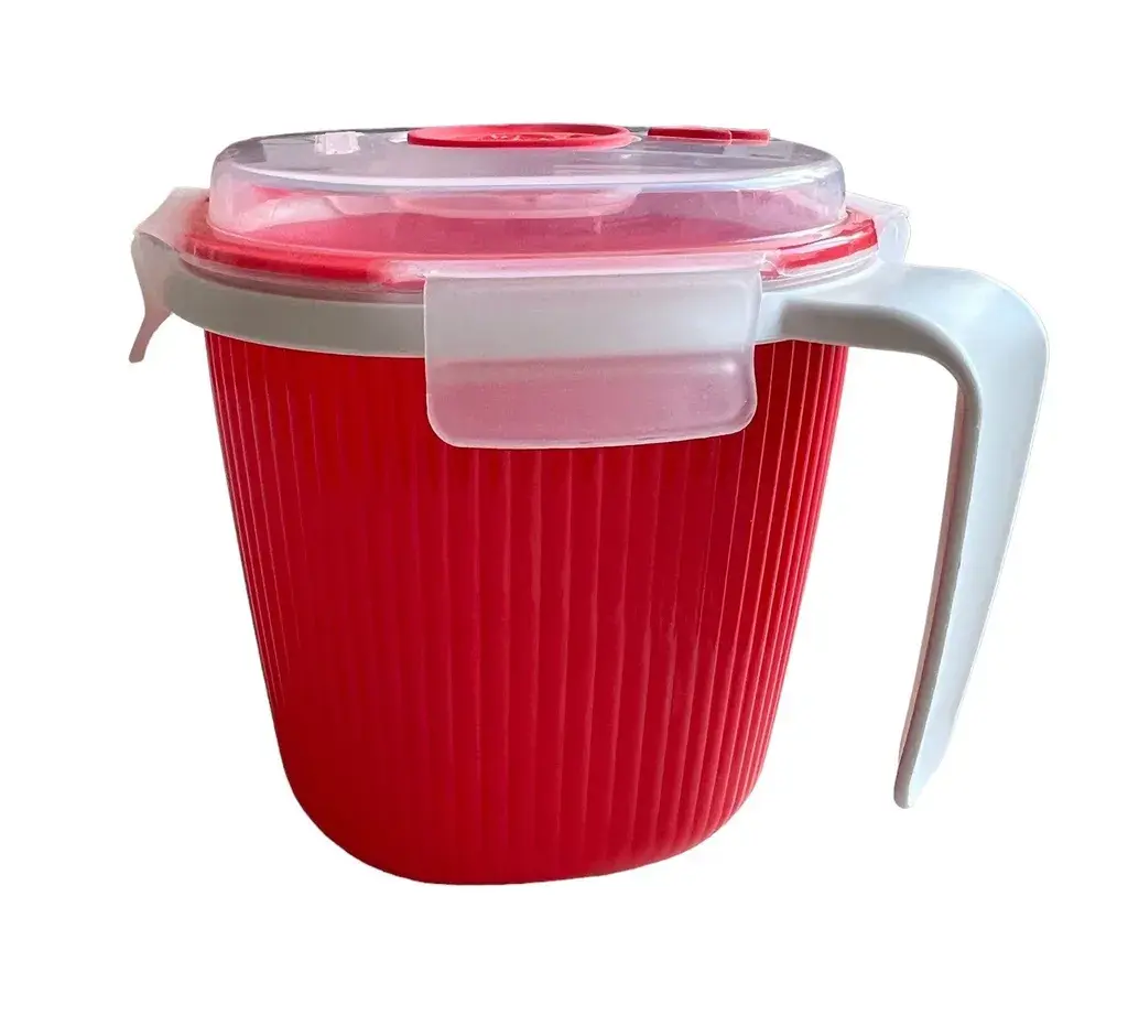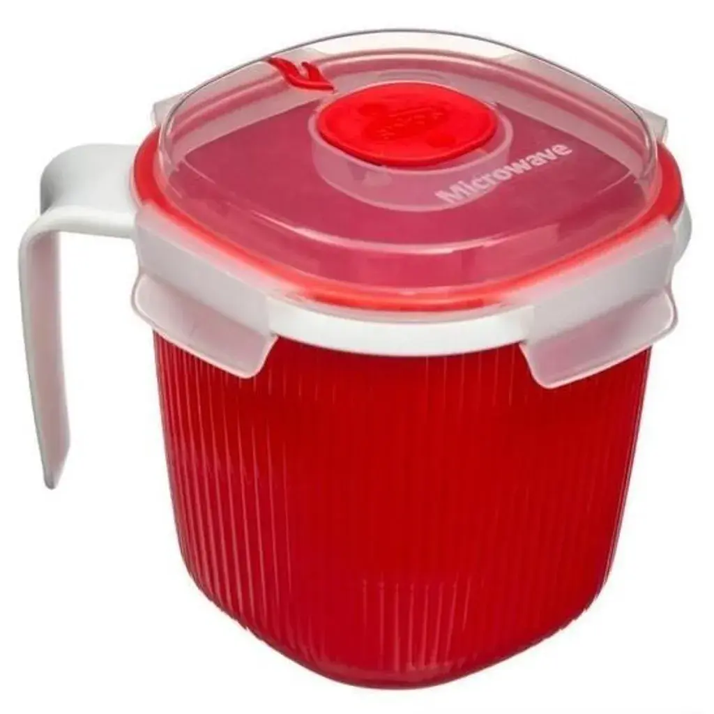 Он облегчает перемещение содержащихся в нем продуктов. Контейнер для супа с ручкой, для микроволновой печи, красного цвета особенно рекомендуется тем, кто ценит практичное оснащение и тем, кому важна каждая деталь.