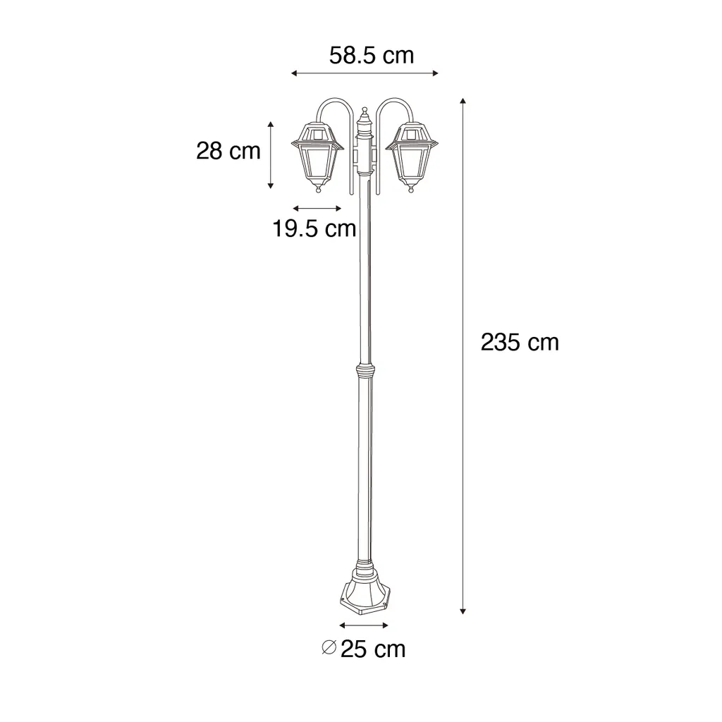Добавьте нотку ностальгии в свое открытое пространство с помощью классического черного фонаря Berta. Этот впечатляющий торшер высотой 235 см вернет очарование давно минувших дней в ваш сад или на подъездную дорожку. Благодаря элегантному дизайну и двум атмосферным светильникам Berta создает теплую, уютную атмосферу сразу после захода солнца. Всепогодный дизайн с защитой IP44 гарантирует, что этот фонарь будет светить в любую погоду. Идеально подходит для тех, кто хочет добавить что-то определенное к своей открытой площадке. Пусть ваш сад сияет с Berta — идеальным сочетанием стиля и функциональности. Не ждите больше и осветите свою территорию сегодня!