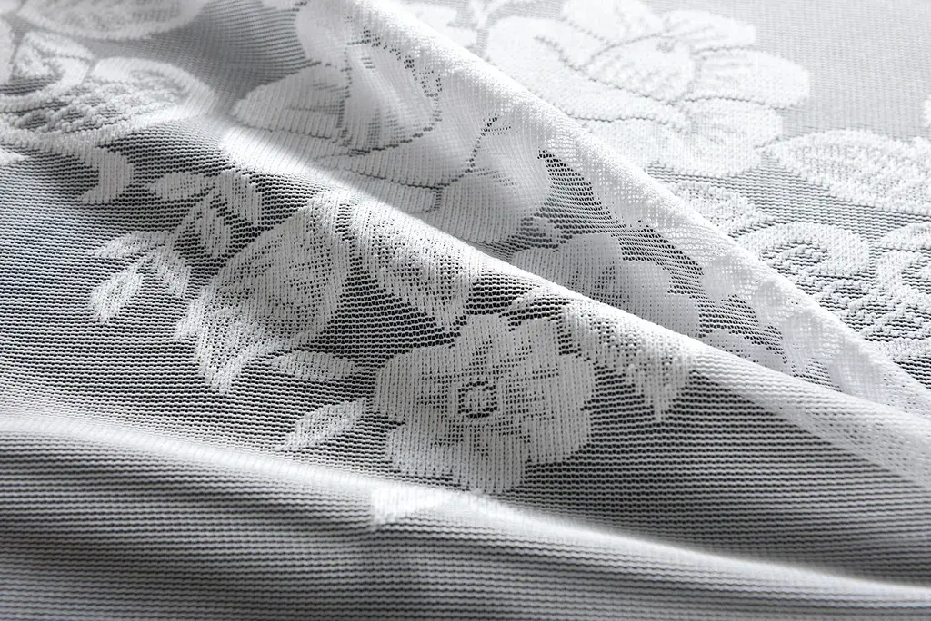 Подвешенная на карниз или карнизы с помощью универсальной ленты, штора имеет красивую драпировку. Жаккардовые шторы полупрозрачны и просты в уходе. Рекомендуем заказывать в 3 раза больше ширины окна, чтобы оптимально украсить штору рюшами.