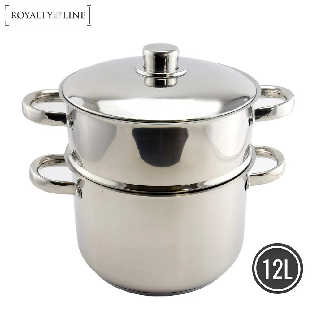 Кастрюля Royalty Line RL-C12L идеально подходит для приготовления вкусных блюд на пару. Эта посуда, изготовленная из пищевой нержавеющей стали, безопасна для повседневного приготовления пищи. Полная крышка пароварки и кастрюли имеет толстую сердцевину, окруженную нержавеющей сталью, что обеспечивает быстрый и равномерный нагрев. В нижней части находится вода, процессы приготовления и приготовления на пару, а в верхней части — продукты. Это идеальный размер для приготовления на пару овощей, морепродуктов или мясных блюд. Приготовление на пару сохраняет витамины и минералы, делая приготовление пищи более полезным. Его можно мыть в посудомоечной машине, и он подходит для всех типов духовок, включая индукционные.