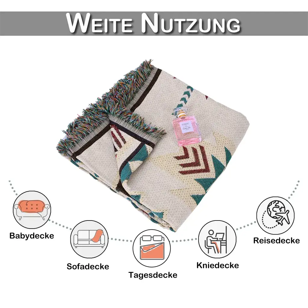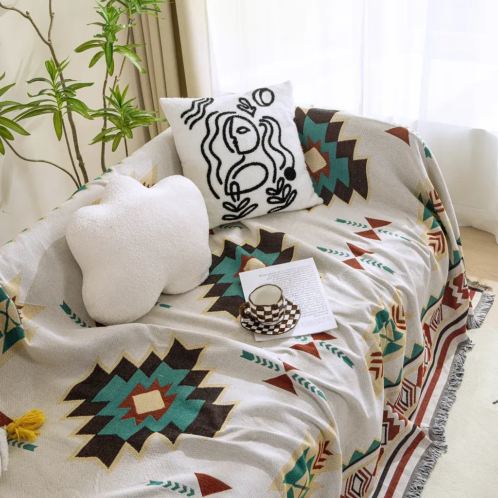 Богемный дизайн --- Одеяло имеет уникальный богемный характер. стильный геометрический узор, который добавляет индивидуальности и очарования любой комнате, в которой он используется.