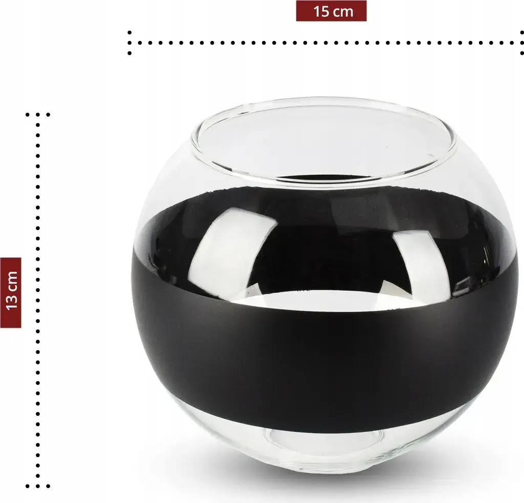 Светильник оснащен сферическим стеклянным плафоном с черной полосой в средней части.