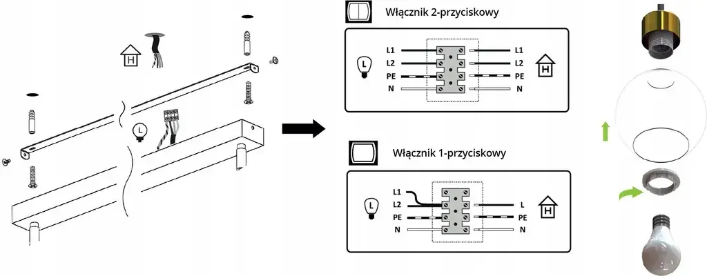 Нет лампочек или дюбеля в комплекте (подберите подходящие к одеялу).