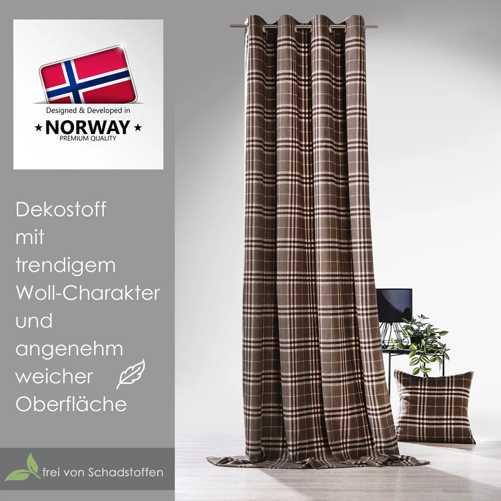 Шарф с 1 петелькой в модном клетчатом узоре в клетку I приятная на ощупь ткань, создающая современную и естественную жилую атмосферу I за тканью легко ухаживать Прочный и долговечный I Наша серия тартан придает каждой комнате естественную домашнюю атмосферу и вне времени интегрируется во все тенденции и стили жизни. Для спальни, гостиной, столовой или детской комнаты — сочетайте этот красивый и модный шарф с люверсами с подходящими подушками для создания индивидуального уютного дома. I Размер: В x Ш 240 x 135 см I из нержавеющего и особенно скользкого металла. люверсы - подходят для веревочных систем и карнизов диаметром до 38 мм IМатериал: 95% полиэстер / 5% шерсть I Цвет коричнево-красный, без содержания шерсти IВсе остальные цвета имеют содержание шерсти и могут легко давать усадку при первой стирке благодаря естественным свойствам ткани - при измерениях учитывалась низкая величина усадки менее 1%