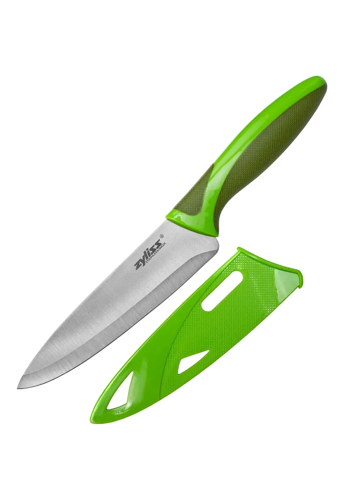 Коллекция ножей из нержавеющей стали изготовлена из штампованной высококачественной японской нержавеющей стали. Эти ножи просты в использовании, а благодаря мягкой ручке они удобны, точны и контролируются. Для каждого ножа имеется подходящая защита лезвия
