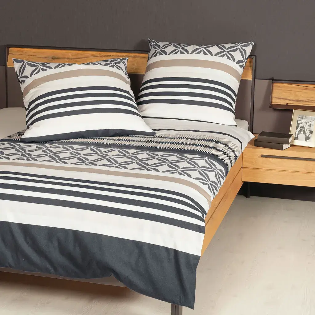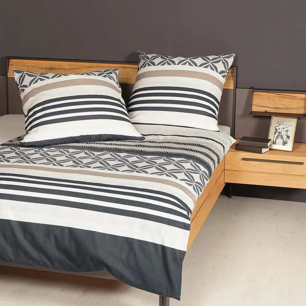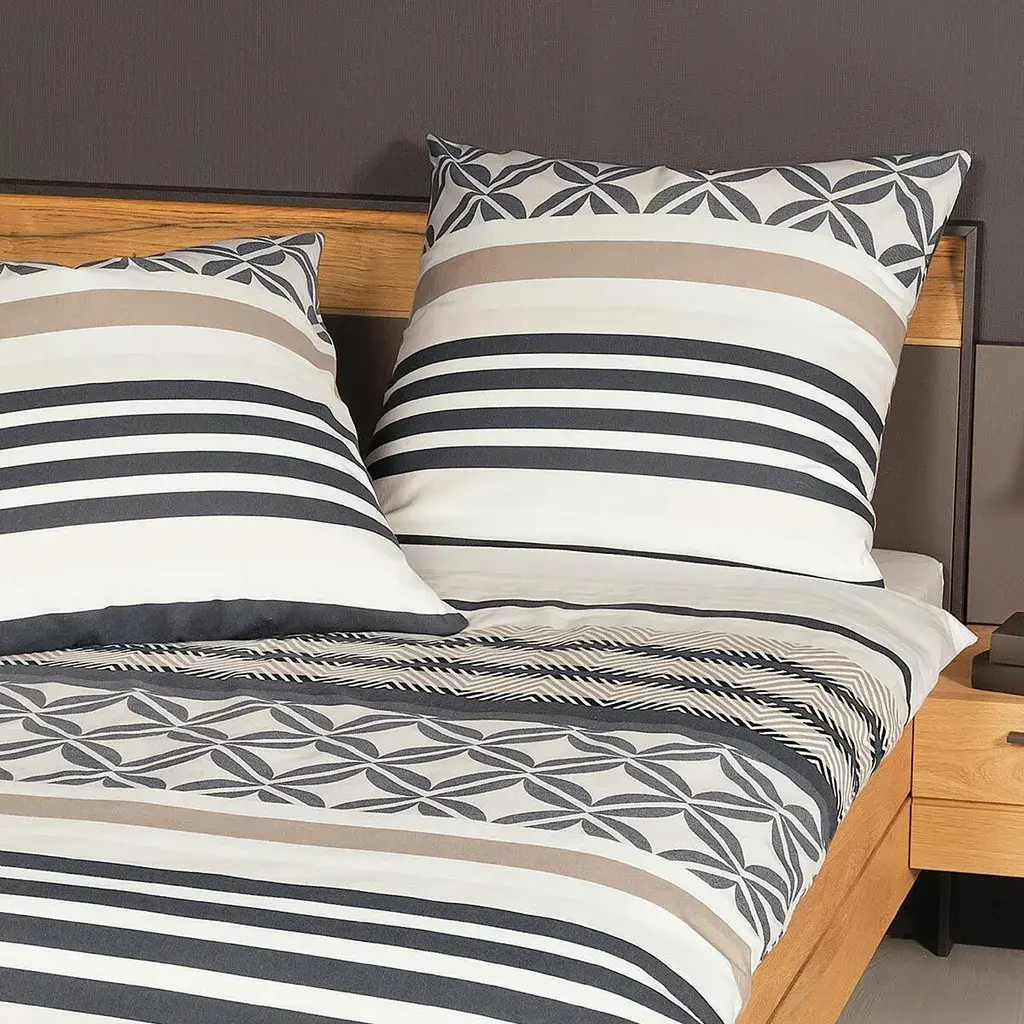 H из земли Северный Рейн-Вестфалия — производитель высококачественного фирменного постельного белья. Сочетание самых современных методов производства. Эксклюзивный дизайн и первоклассное качество – залог успеха. Постельное белье отвечает всем требованиям благодаря несложному уходу и модному дизайну. Ткань подходит для сушки в стиральной машине и стирки при температуре 60 градусов. Высококачественный материал изготовлен из 100% хлопка.