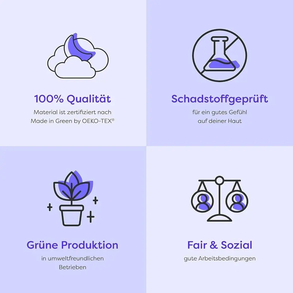 Постельное белье Wolkenfeld из микрофибры – настоящее мягкое чудо. Чрезвычайно тонкое волокно делает его невероятно мягким и в то же время предотвращает проникновение пылевых клещей. Поэтому он особенно подходит для аллергиков. За пододеяльником также очень легко ухаживать. Он быстро сохнет даже без сушилки и практически не мнется. Поэтому глажка не требуется. Благодаря потайной молнии постельное белье можно быстро накрыть. Мечта для каждой сони.