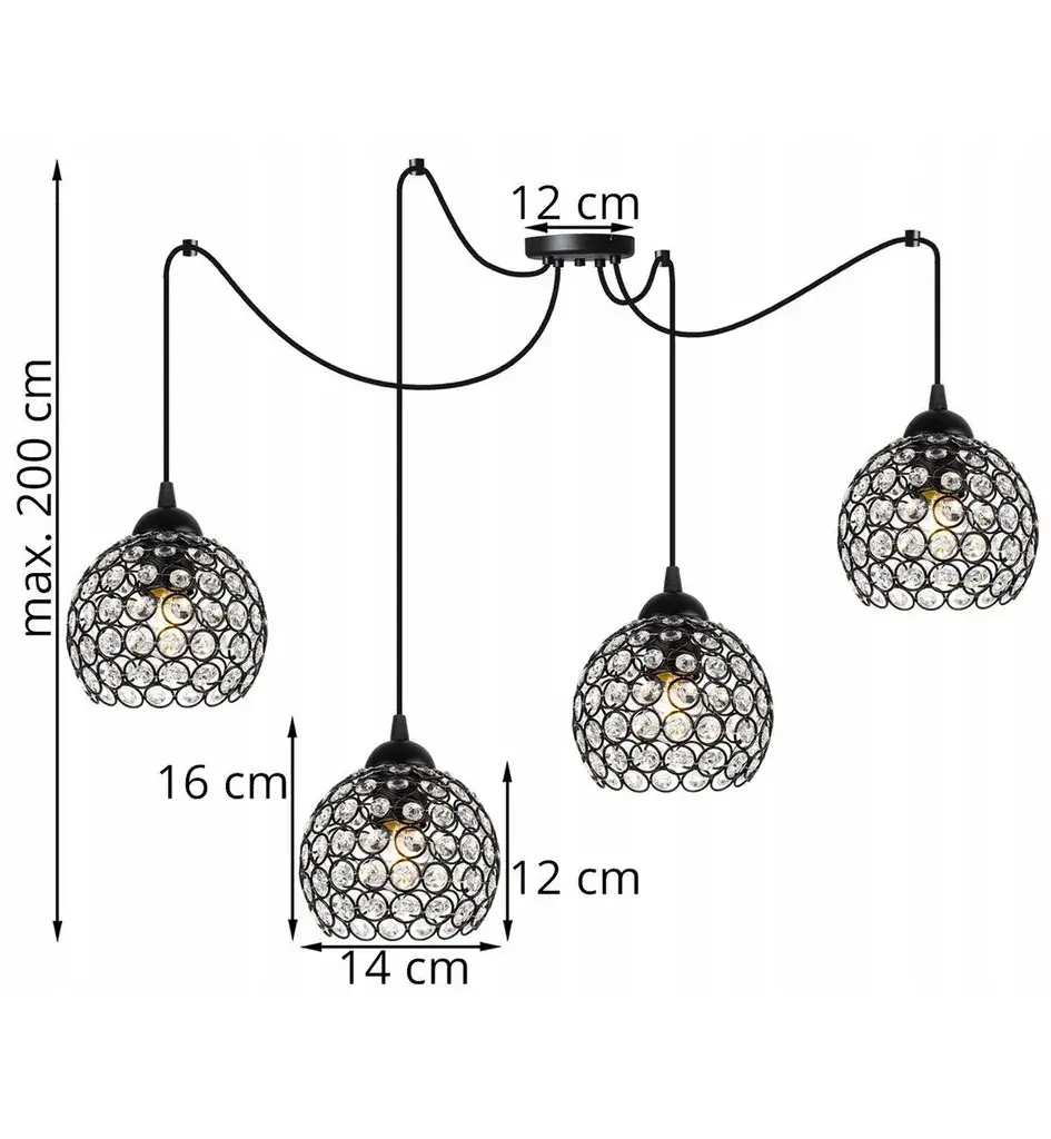 Размеры и качество изготовления - максимальная мощность нашей подвесной лампы составляет 60 Вт, E27. база, 230В. Высота лампы 200 см (регулируется под ваш интерьер), высота рассеивателя 12 см и диаметр 14 см. Конструкция изготовлена из прочного, устойчивого к повреждениям металла, поэтому светильник прослужит вам долго.
