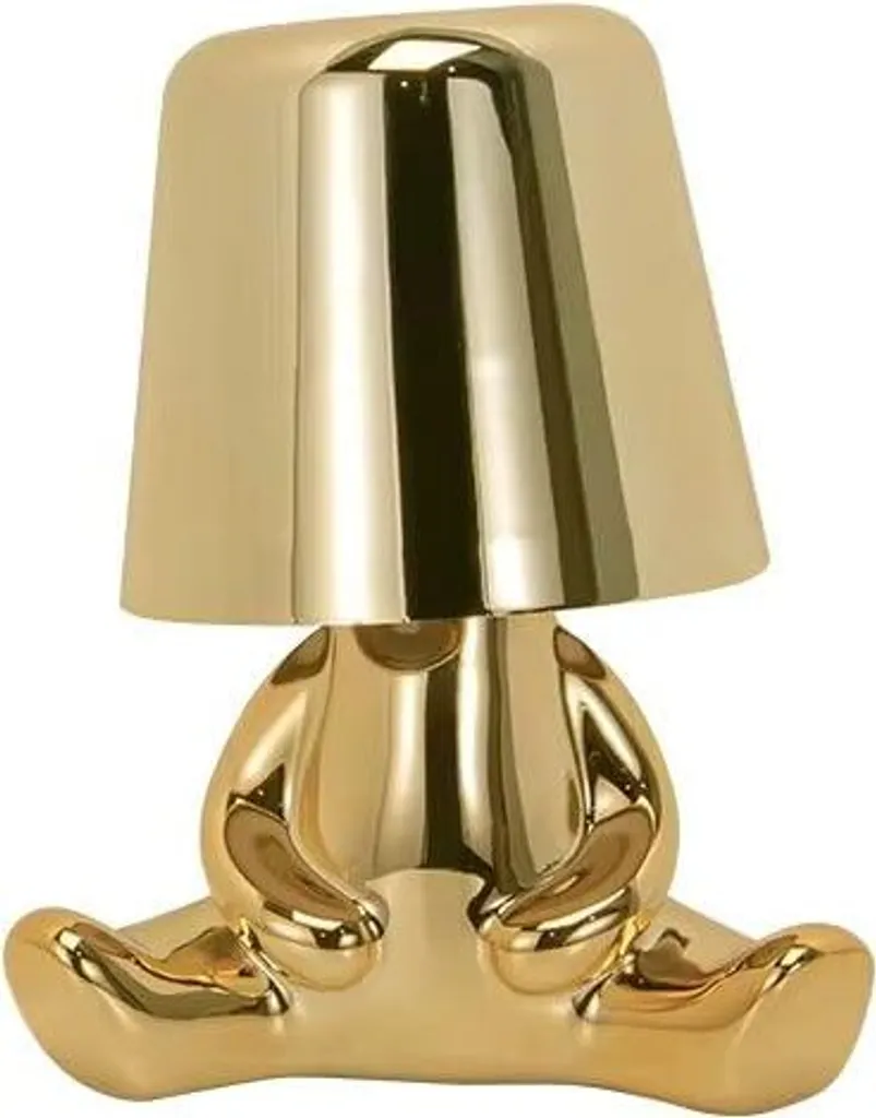 Дизайн Bins Brothers простой, но привлекательный и веселый. Это лампа в форме человека, доступная в золотом, серебряном и черном цветах. Человечек изготовлен из металла и имеет стилизованный дизайн. Голова самца действует как кнопка включения/выключения лампы, которая срабатывает при прикосновении. Когда вы прикасаетесь к голове самца, лампа включается или выключается, и мягкий, теплый свет меняет комнату. Светодиодная лампа в светильнике излучает теплый белый свет, создающий расслабляющую атмосферу.