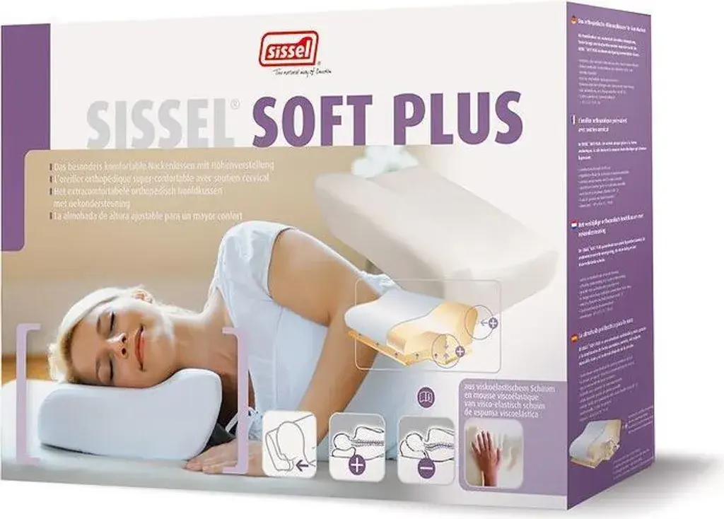 Боль в шее часто является причиной неправильного положения для сна, которое вы можете оптимизировать во время сна с помощью такой подушки для шеи, как СИССЕЛЬ Софт Плюс.