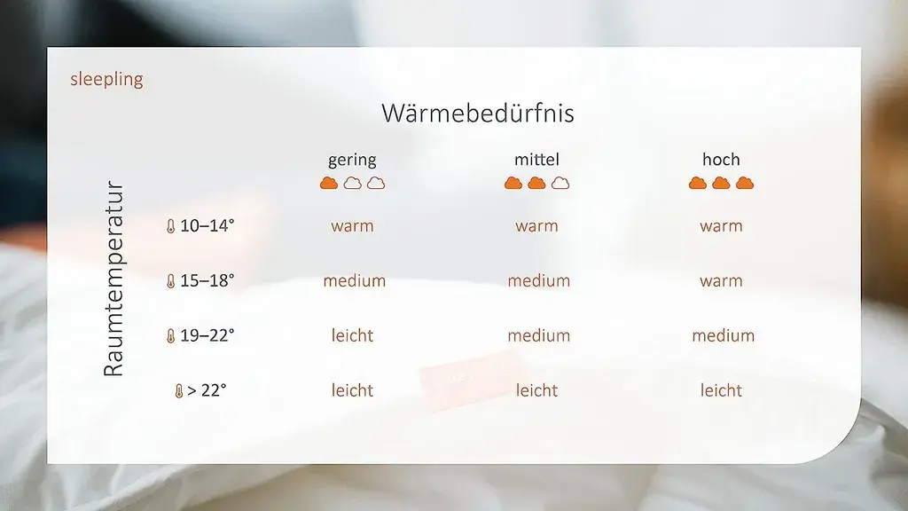 Наше одеяло из микрофибры Basic 100 — идеальный компаньон для сна круглый год. У вас есть возможность выбрать легкое летнее одеяло, теплое зимнее одеяло, всесезонное одеяло и четырехсезонное одеяло разных классов тепла. В дополнение к различной плотности наполнения одеяла 4-сезонное одеяло обеспечивает еще большую гибкость. В этом случае вы получите два одеяла. Легкое одеяло с меньшим количеством наполнителя, что делает его идеальным летним одеялом, и одеяло со средним уровнем наполнения, которое идеально подходит в качестве переходного одеяла на весну и осень. Оба одеяла одеяла «4 сезона» затем можно соединить друг с другом с помощью застежек-кнопок, создав уютное и теплое зимнее одеяло. Высококачественный стеганый чехол из микрофибры и наполнитель из 100% полиэстера обеспечивают приятный мягкий сон. Одеяло можно стирать при температуре до 60 градусов, поэтому оно идеально подходит для аллергиков. Затем просто положите его в сушилку, и ваше одеяло снова готово к использованию. Вся продукция семейств Sleepling Basic и Comfort производится известными производителями и, конечно же, соответствует современным стандартам ().