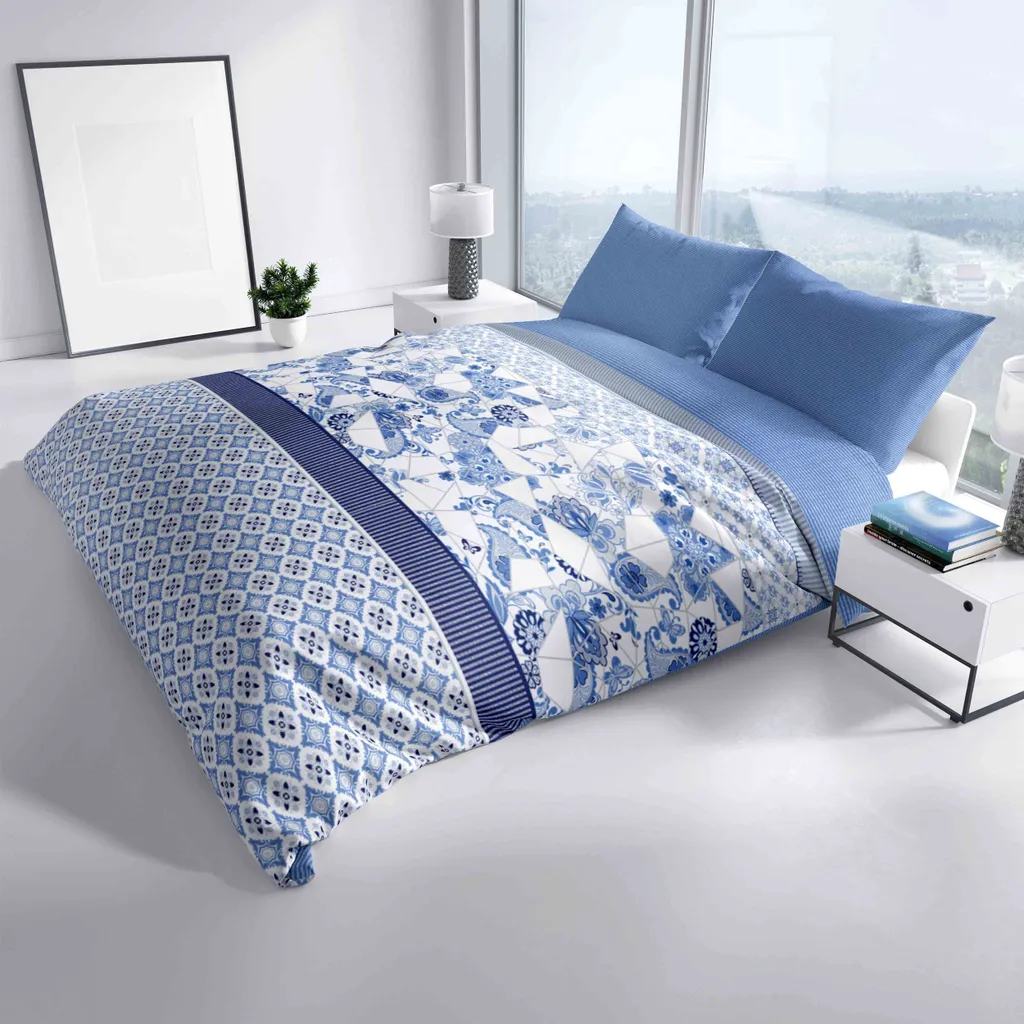 Современный узор пейсли и полосатый узор в свежих синих и белых тонах гармонично впишется в любую спальню и может быть отрегулирован по желанию благодаря двусторонней функции.