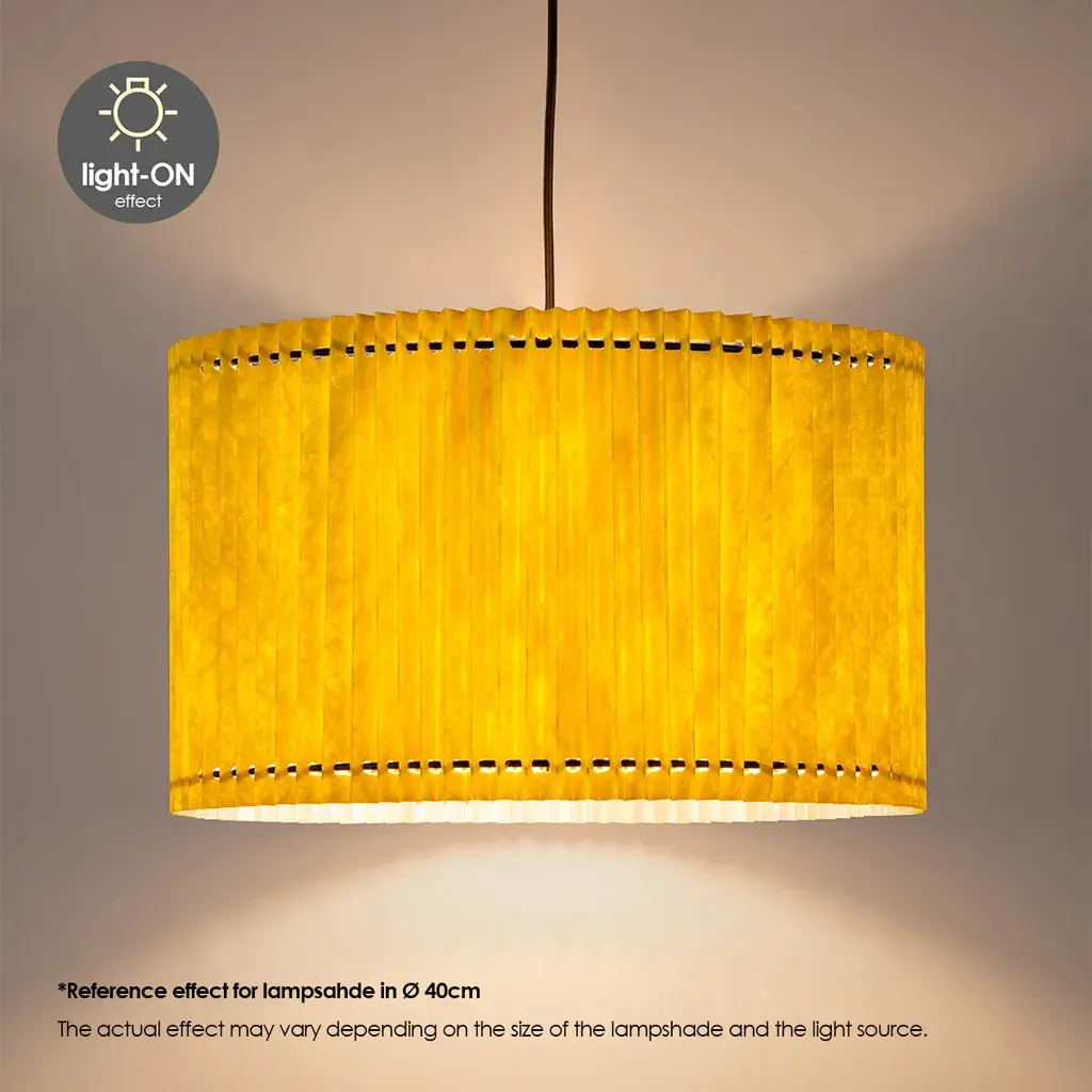 Дом, милый дом Этот уникальный Абажур желтого цвета со складками из бумаги диаметром 40 см и высотой 20 см делает его простым и элегантным, подходящим для широкого спектра домашних стилей. Абажур, совместимый со светодиодной лампой, является экологически чистым и энергоэффективным, обеспечивает эффект мягкого освещения и создает теплую и уютную атмосферу. Он идеально впишется в спальню, гостиную или кабинет. Кроме того, абажур сертифицирован DEKRA Ro