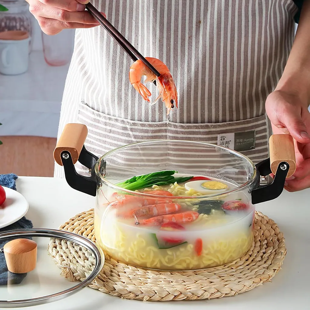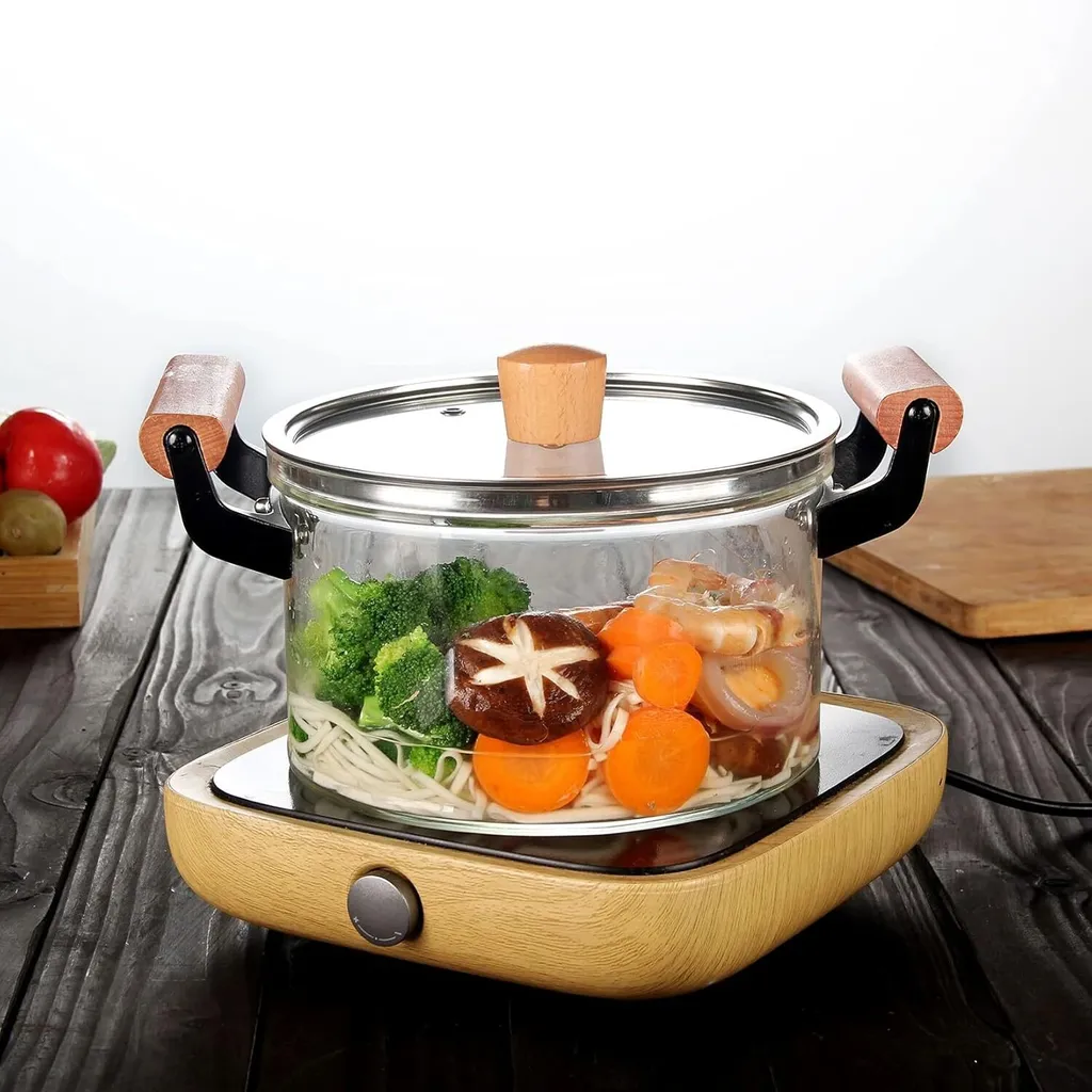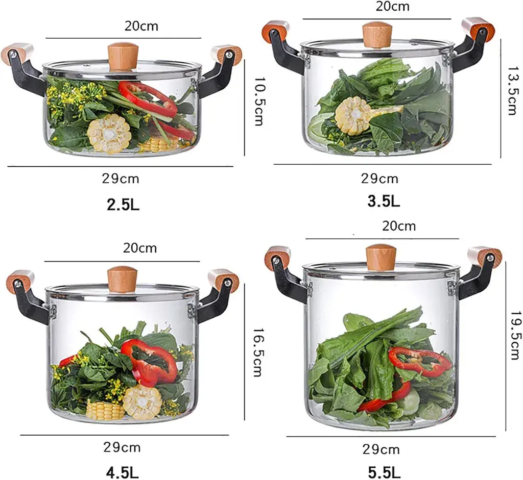 Изготовленная из высококачественного пищевого боросиликатного стекла, на 100 % не содержащая свинца, стеклянная кастрюля полезнее для здоровья, чем посуда из пластика или нержавеющей стали.