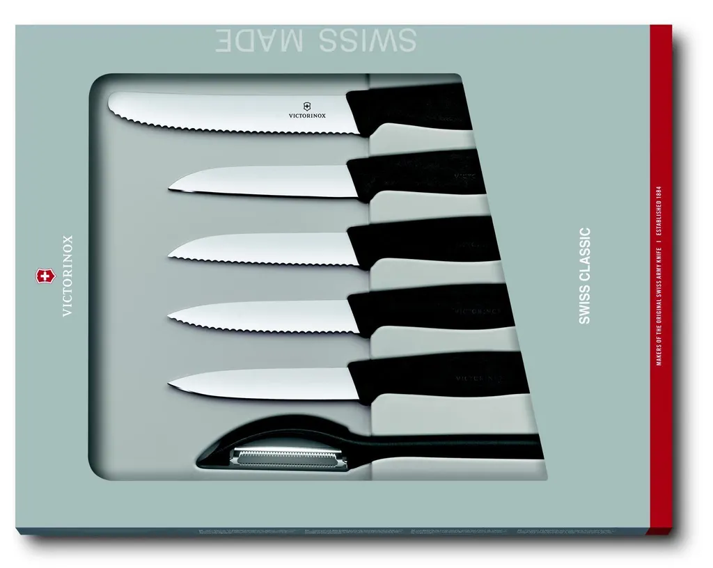 Набор овощных ножей Victorinox 6 предметов, оптимальное сочетание различных лезвий для кухни, в элегантной упаковке для каждый Возможность. С эргономичной ручкой и лезвием из нержавеющей стали, с прямым и зубчатым краем.