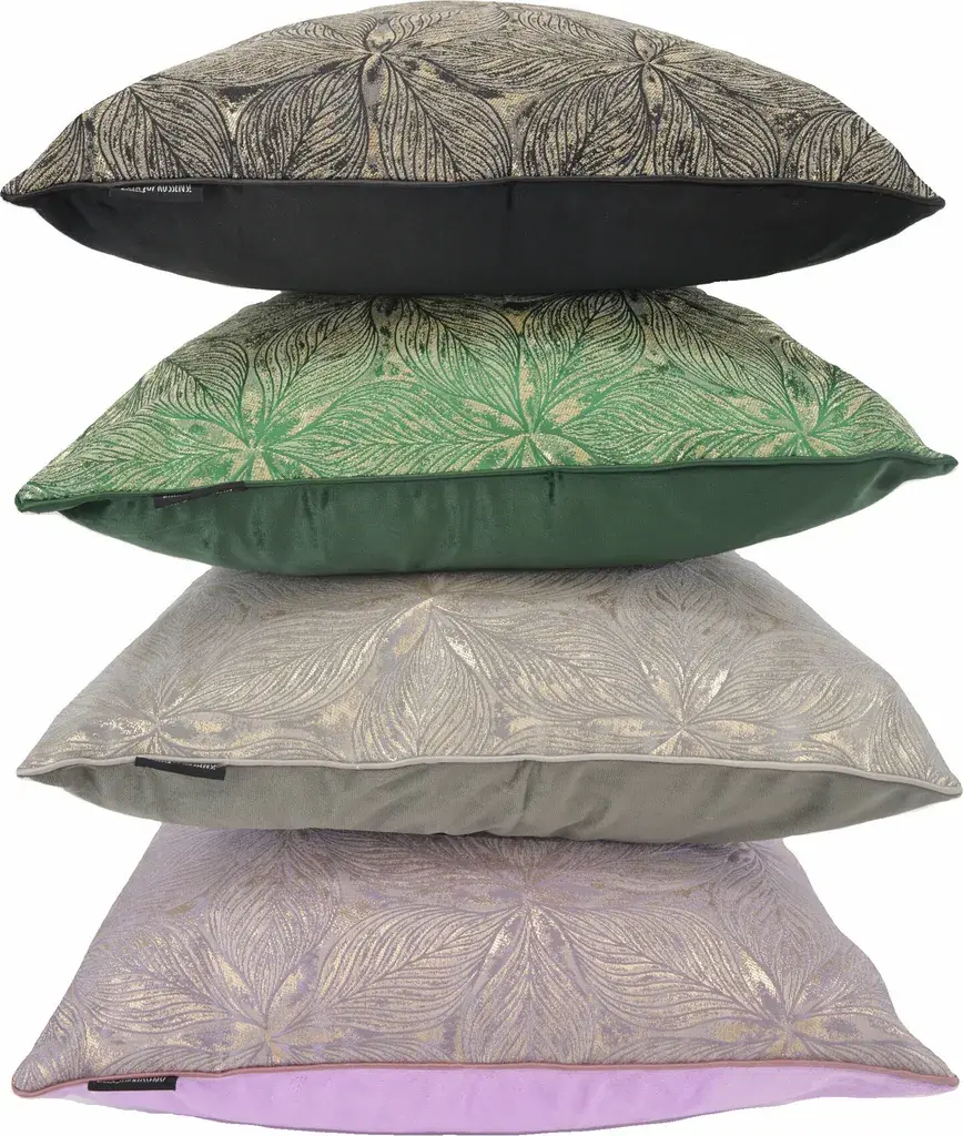 Обе стороны выполнены из мягкого бархата с принтом из металлизированной фольги спереди. Чехол можно закрыть на потайную молнию. Лучше всего стирать чехол аккуратно (желательно вручную), чтобы он дольше оставался красивым и в форме.