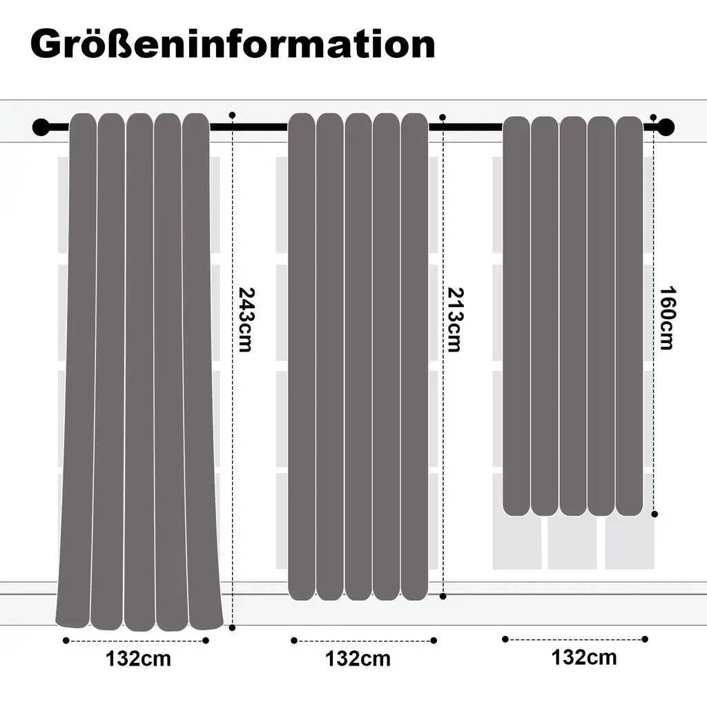 Упаковка:Продается по две штуки. Высота 213 см х ширина 132 см для каждой детали. (Высота измеряется от верха люверсов.) Рекомендуем заказывать штору шириной, которая в 1,5–2,6 раза превышает ширину стержня.