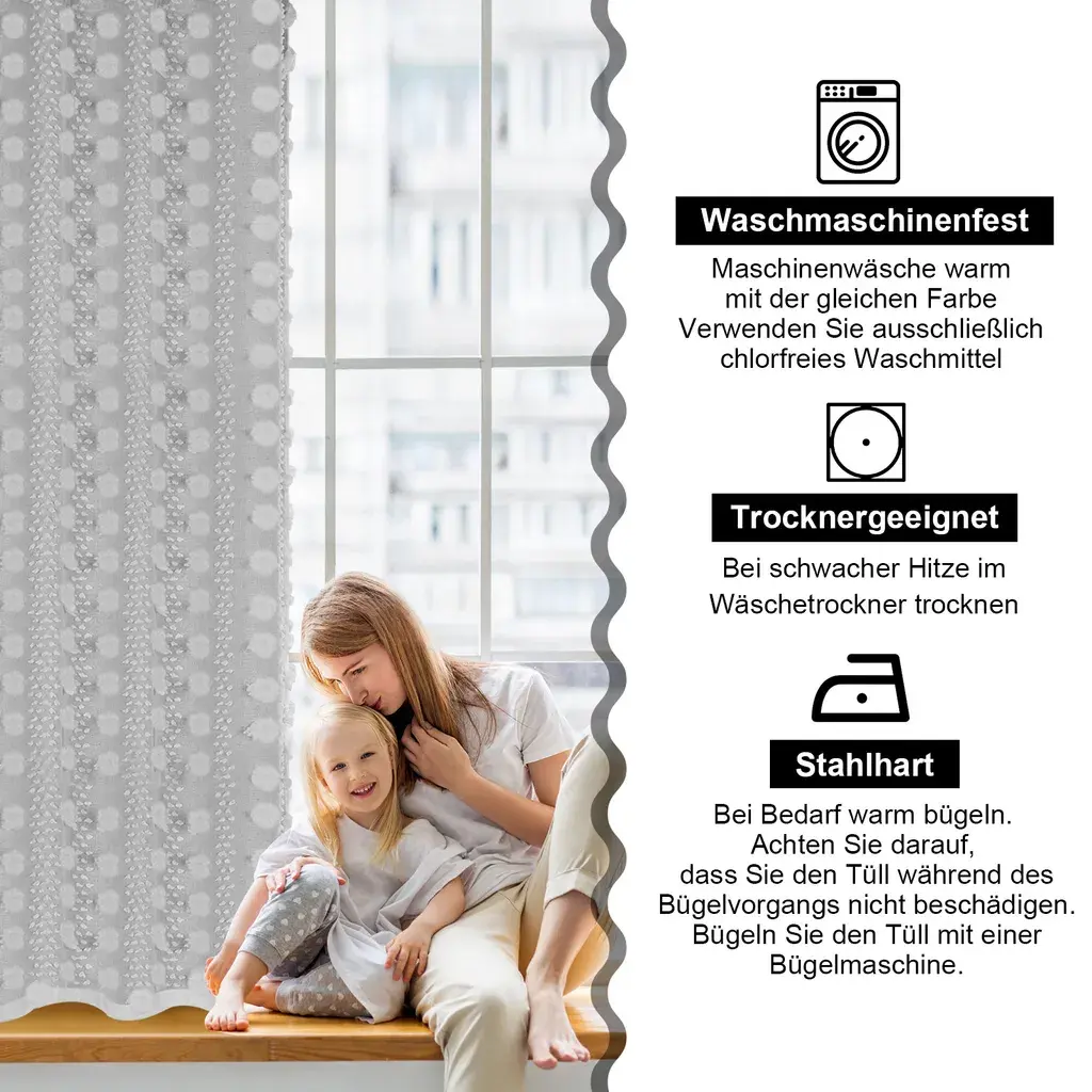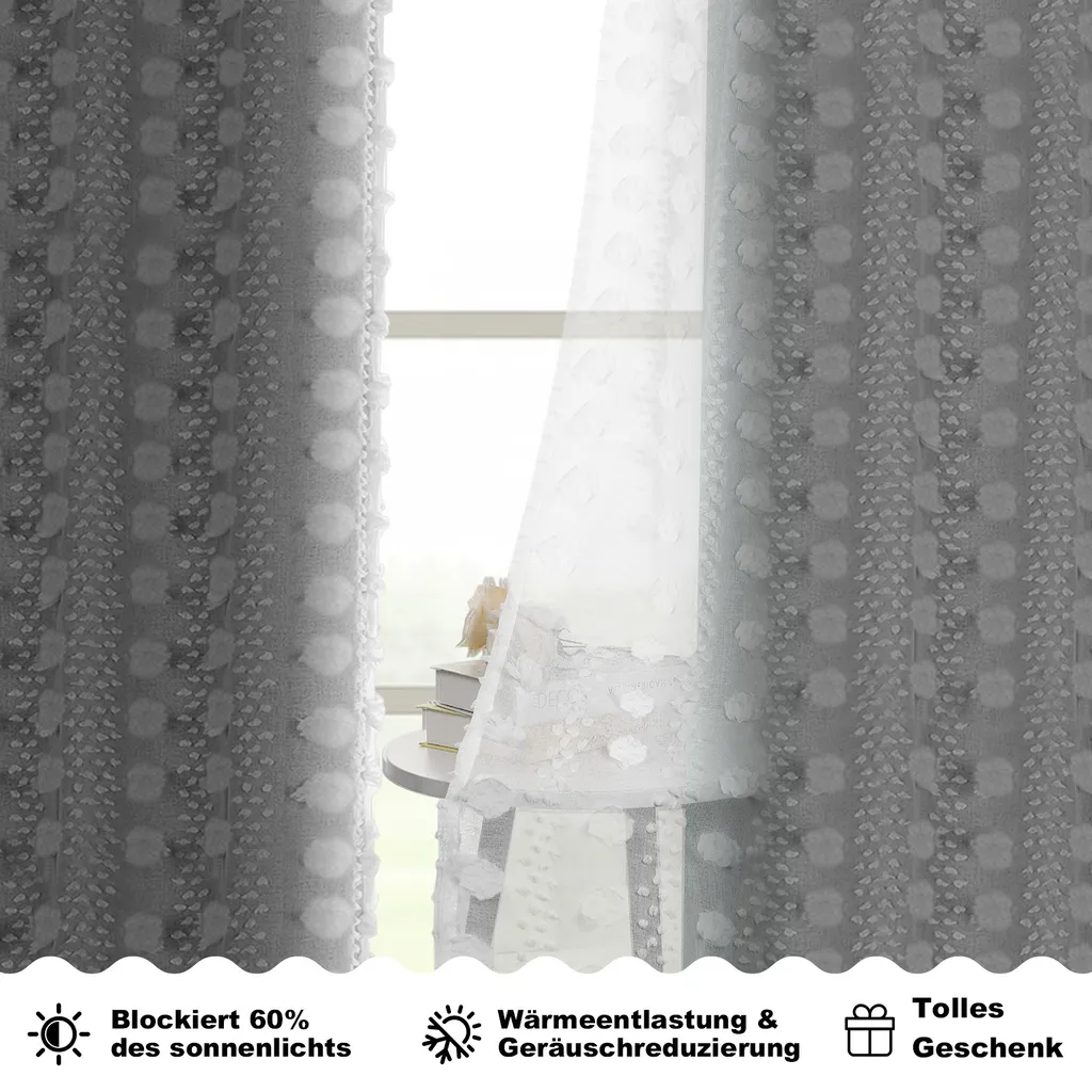 СПЕЦИАЛЬНЫЙ ДИЗАЙН:Добавьте слой тюля по верху штор, тюль украшен объемным горошком. Двойные шторы делают комнату более волшебной и сказочной, лучше защищая вашу конфиденциальность.