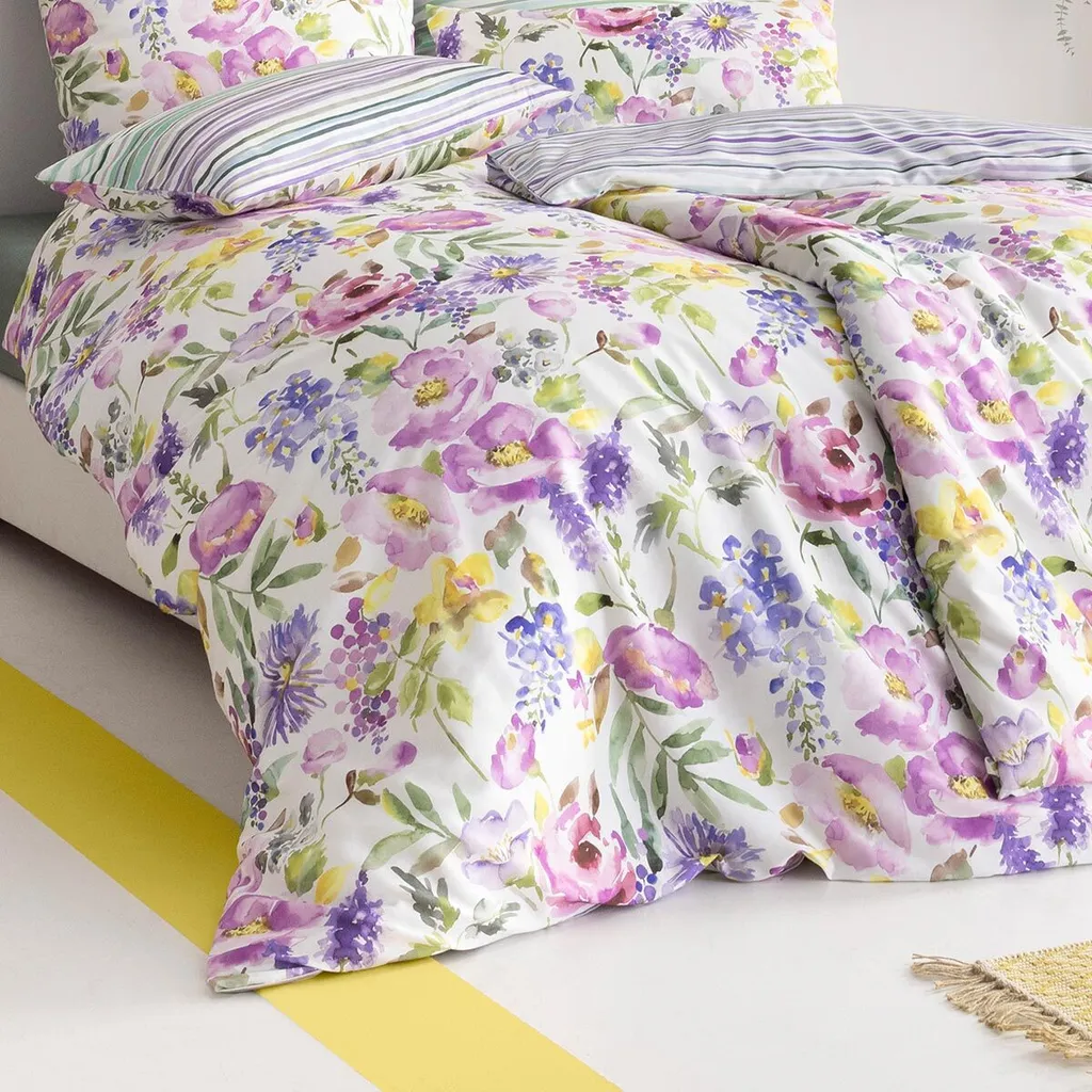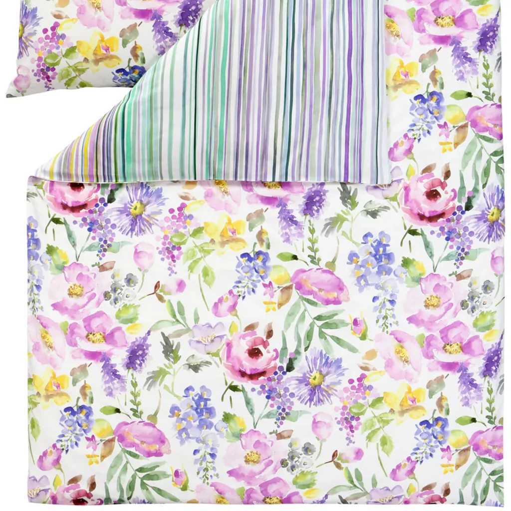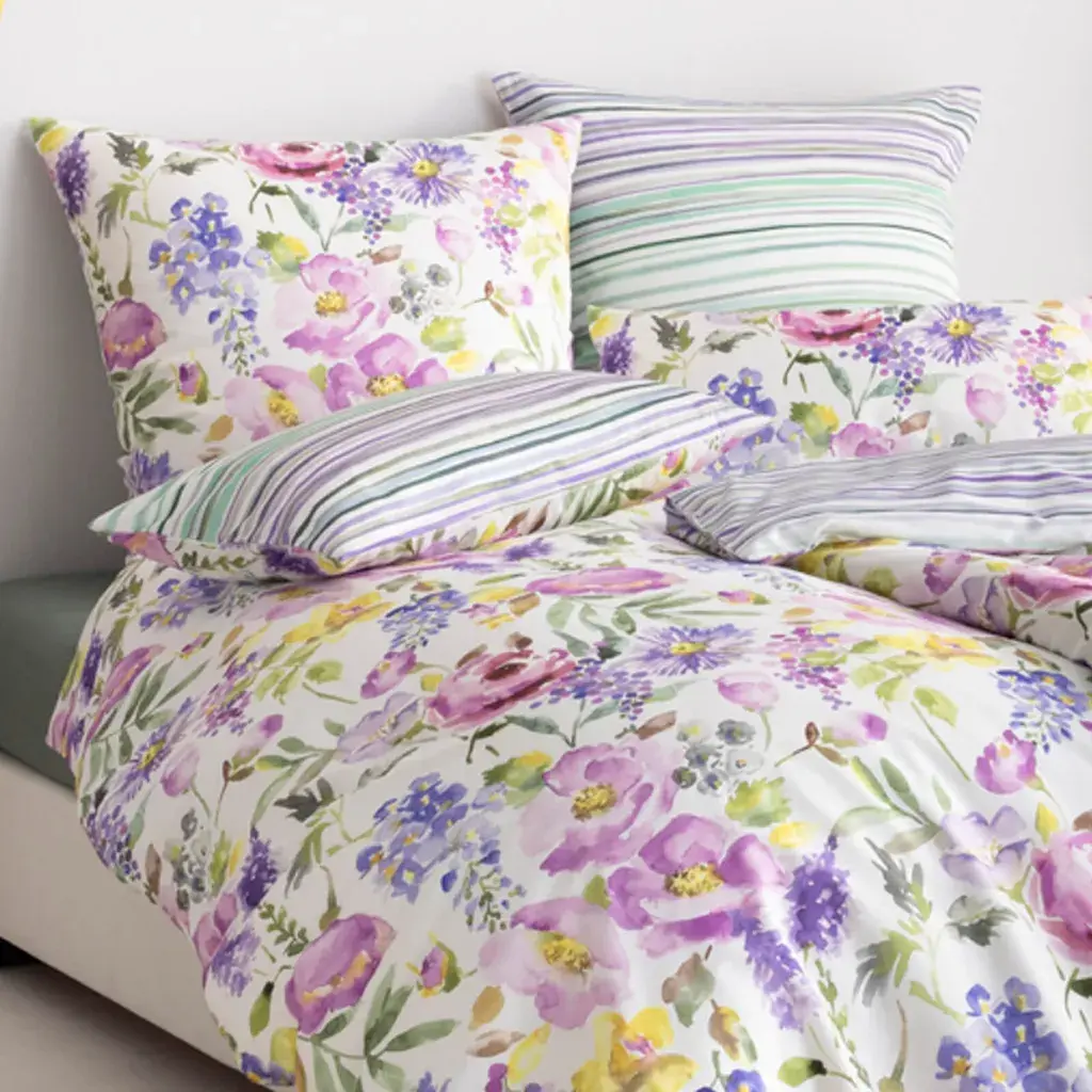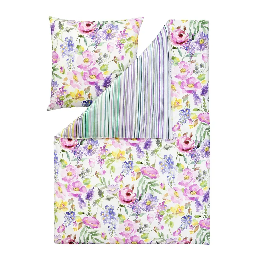 Постельное белье Wendy от Estella станет настоящим украшением вашей спальни. Живописный цветочный мотив в акварельном стиле простирается по всей передней части постельного гарнитура. Полосатая сторона обложки выдержана в том же цветовом стиле и идеально дополняет цветочный дизайн. Устройтесь поудобнее в дышащем и мягком пододеяльнике из 100-процентного хлопка гладкого атласа Mako и наслаждайтесь абсолютным комфортом во время сна.