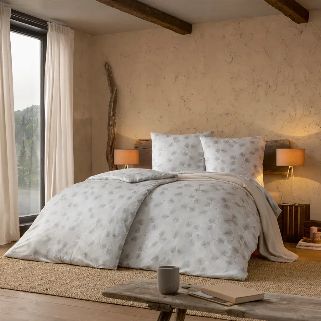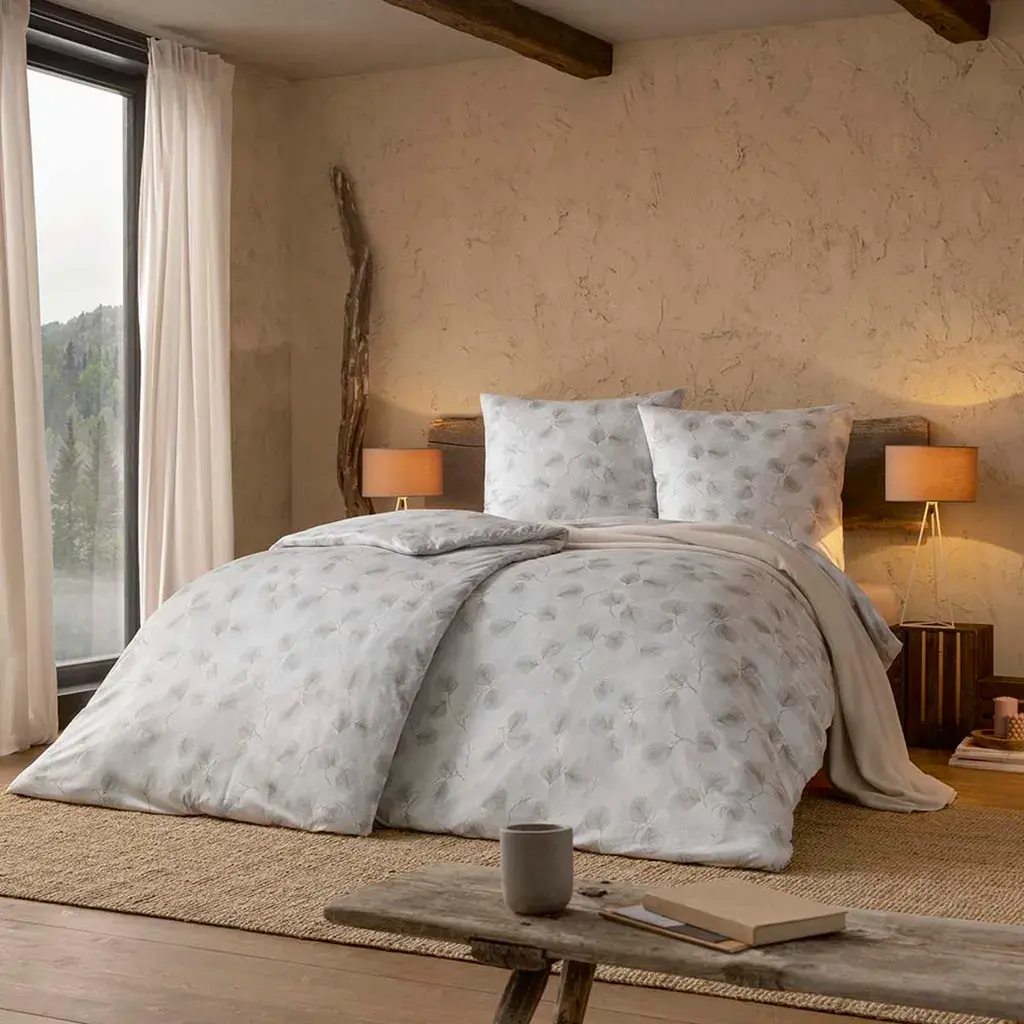 Откройте для себя постельное белье Estella из интерлока Mako Rebecca в элегантном серебристо-сером цвете! Это постельное белье с роскошным узором в виде листьев придаст вашей спальне нотку изысканности.
