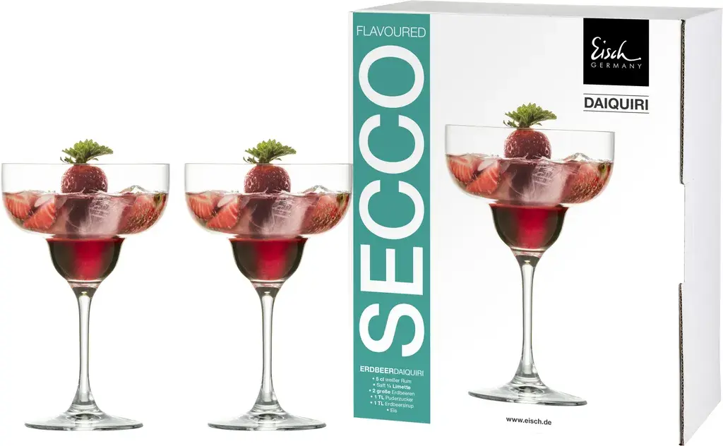 Бокалы DAIQUIRI SECCO, набор из 2-х стаканов. Бокалы EISCH DAIQUIRI SECCO изготовлены из бессвинцового хрусталя. Наполните элегантные бокалы дайкири, маргаритой или собственными творениями. Стаканы EISCH SECCO можно мыть в посудомоечной машине.