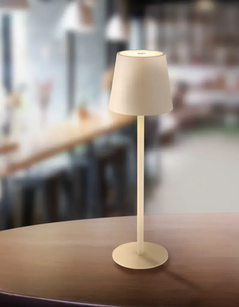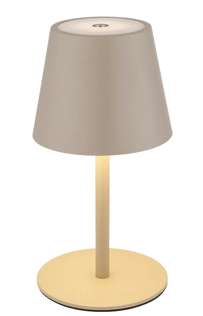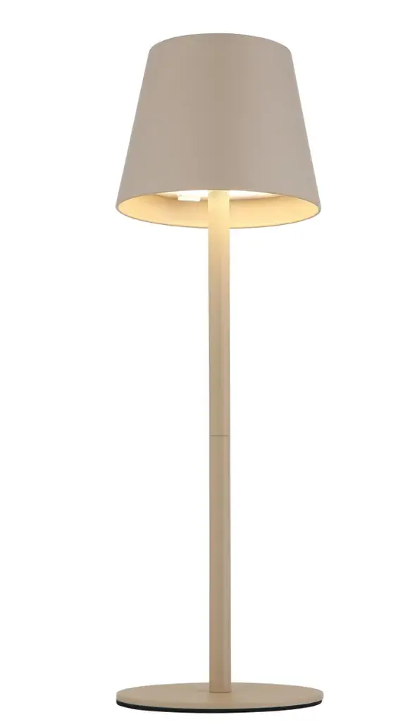 Круглый корпус из матового металла песочного цвета придает ему современный вид. Плафон изготовлен из матового черного и опалового пластика, что обеспечивает приятное светораспределение. Эту настольную лампу можно использовать в трех различных целях: ее можно использовать как настольную лампу с интенсивным светом с прямой трубкой, использовать с двумя трубками для более мягкого освещения или использовать в качестве крышки для бутылки. Он регулируется по яркости и имеет бесступенчатый сенсорный диммер, а также возможность фиксации цветов. Благодаря выходной мощности 200 люмен и регулируемой температуре света от 3000 К до 5000 К он обеспечивает индивидуальное освещение в соответствии с вашими потребностями. Фонарь поставляется с USB-кабелем для зарядки и имеет практичную функцию сенсорного включения/выключения. Он даже загорается во время зарядки.