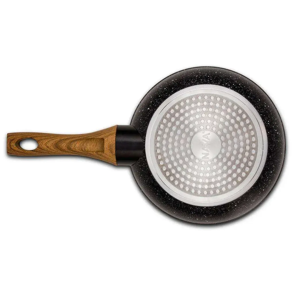 - Сковорода диаметром 20 см изготовлена из алюминия, пятислойного гранитного покрытия и стальной индукционной вставки.