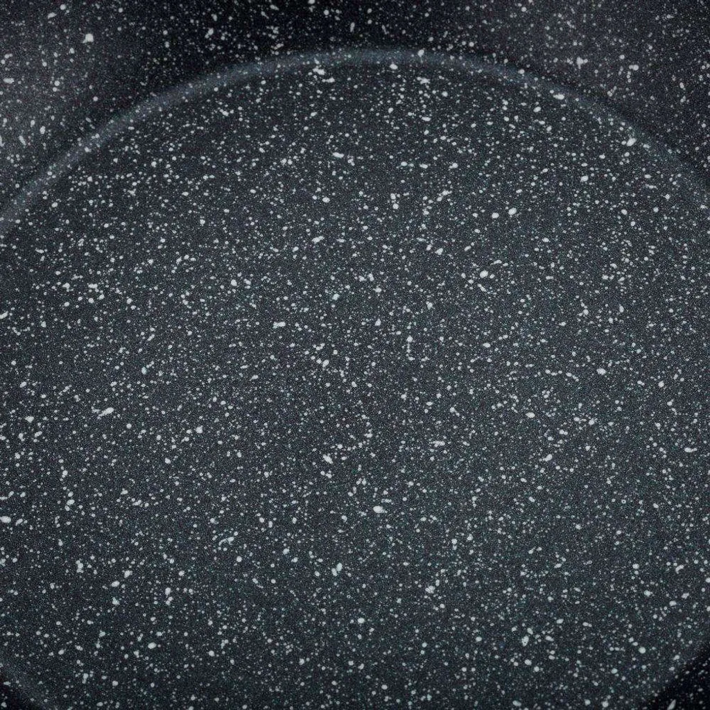 - Сковорода имеет гранитное антипригарное покрытие, устойчивое к царапинам и термостойкое.