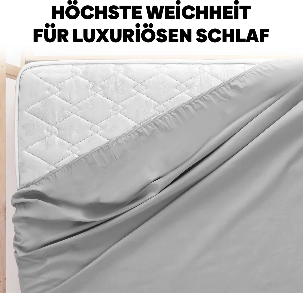 - НЕ СОДЕРЖИТ ЗАГРЯЗНИТЕЛЕЙ И ПОДХОДИТ ДЛЯ ЛЮБЫХ АЛЛЕРГИЕЙ - Простыня прошла испытания в институте испытательных ангелов и идеально подходит для аллергиков и людей с чувствительной кожей. - ВСЕ ЭЛАСТИК. Благодаря эластичной ленте простыня легко приспосабливается к вашему матрасу и придает вашей кровати красивый вид. Благодаря высоте перемычки 30 см он подходит для матраса высотой до 25 см.