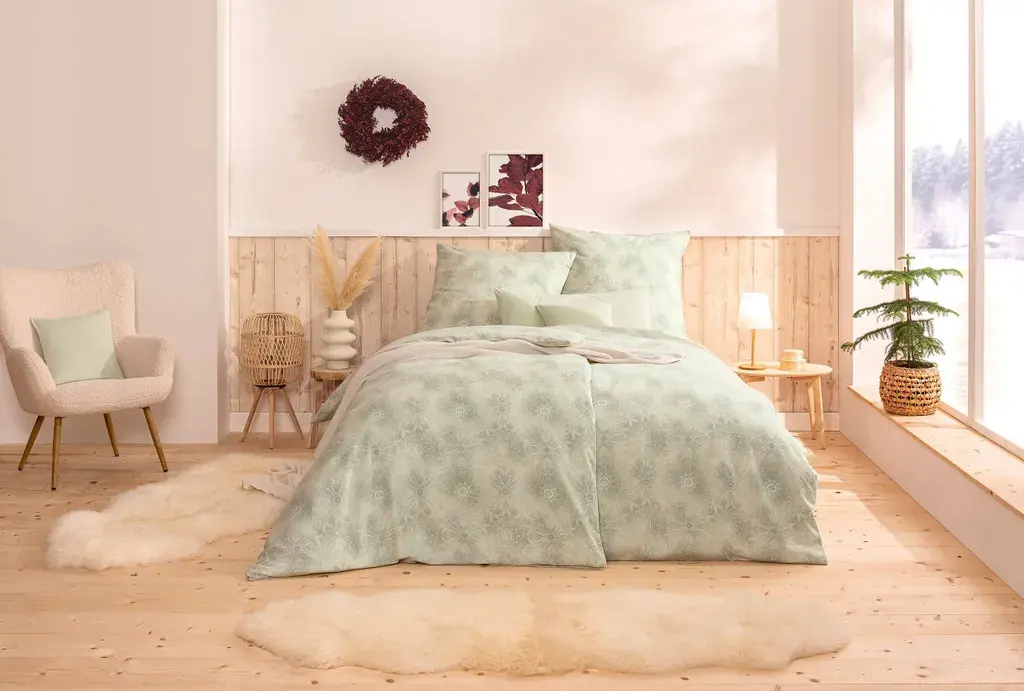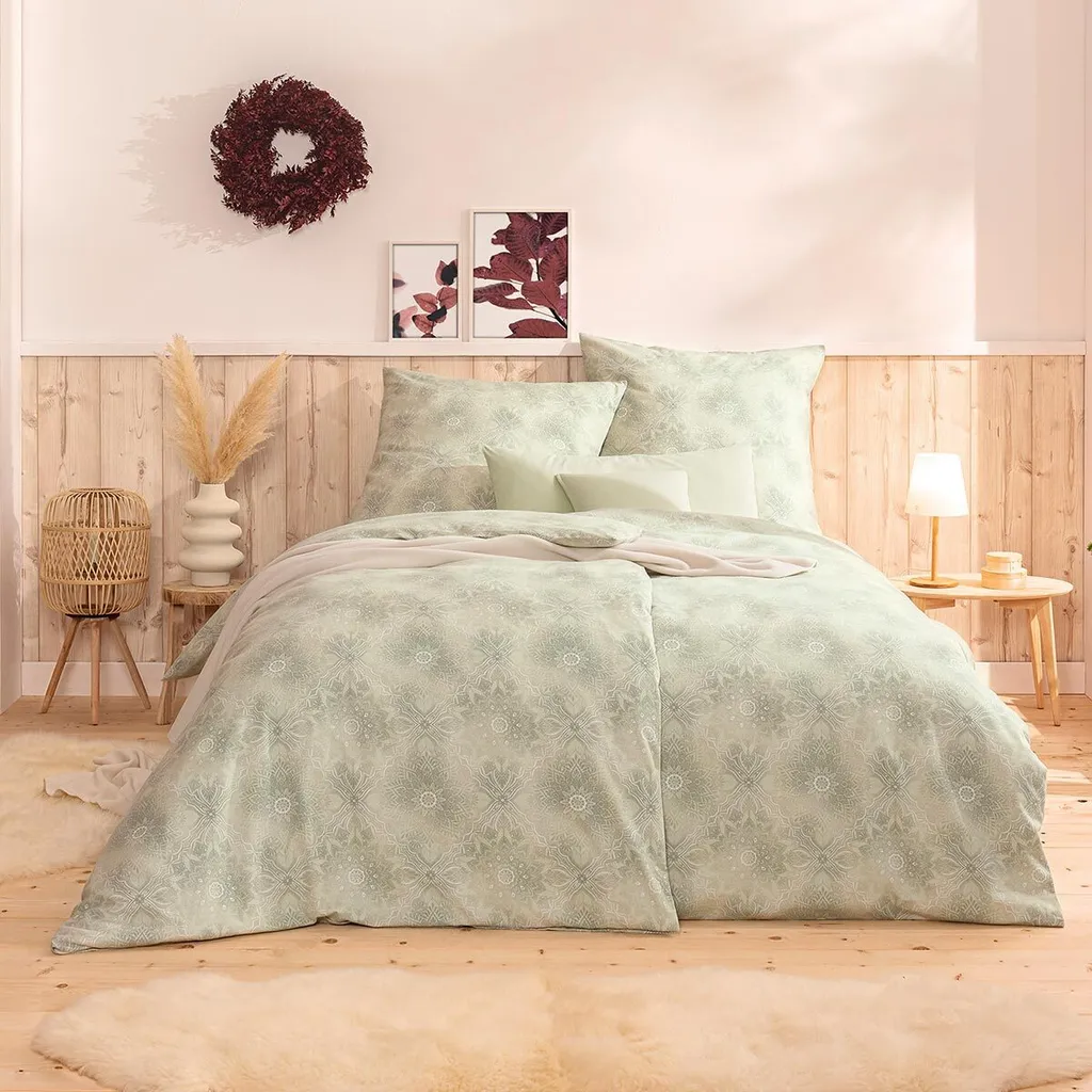 Комплект постельного белья из благородной фланели Estella Ateliers Venezia цвет reseda размер 155х220+80х80